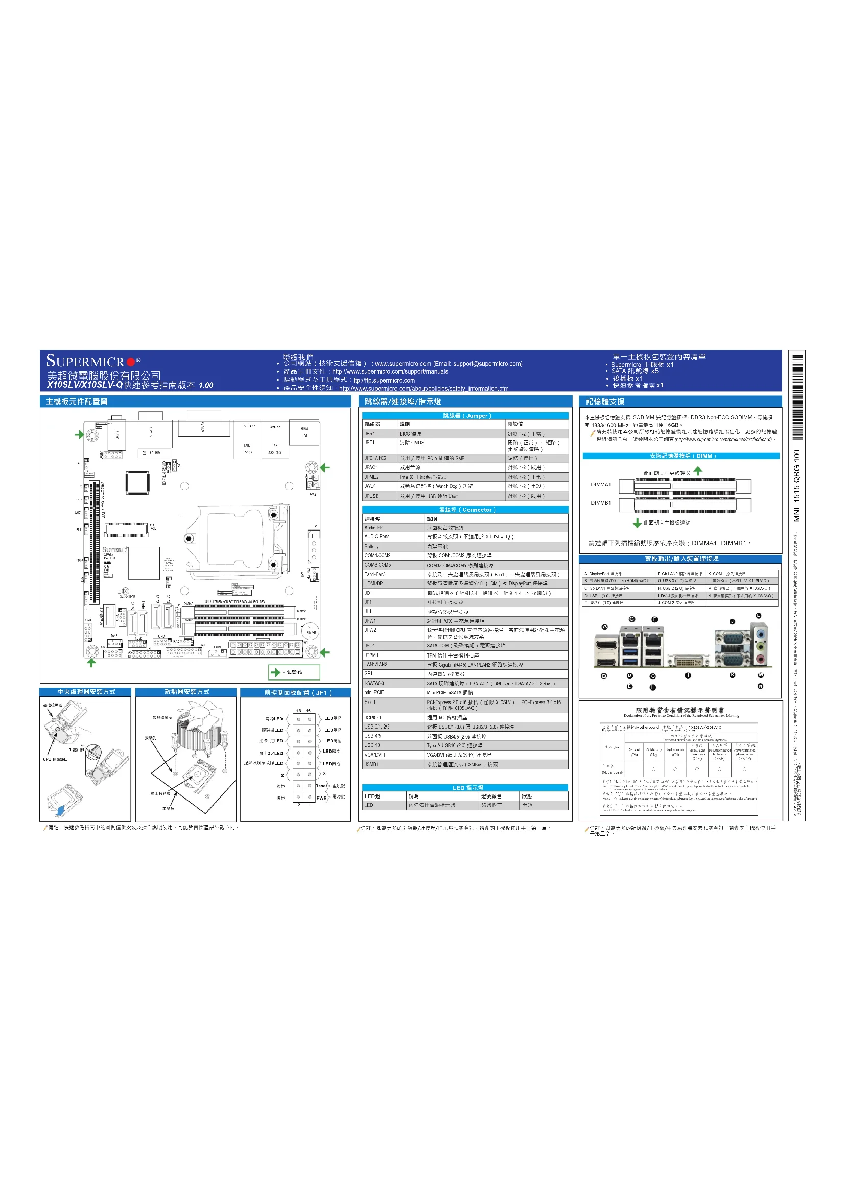Retrouvez gratuitement la notice de l'appareil X10SLV Supermicro au format PDF.