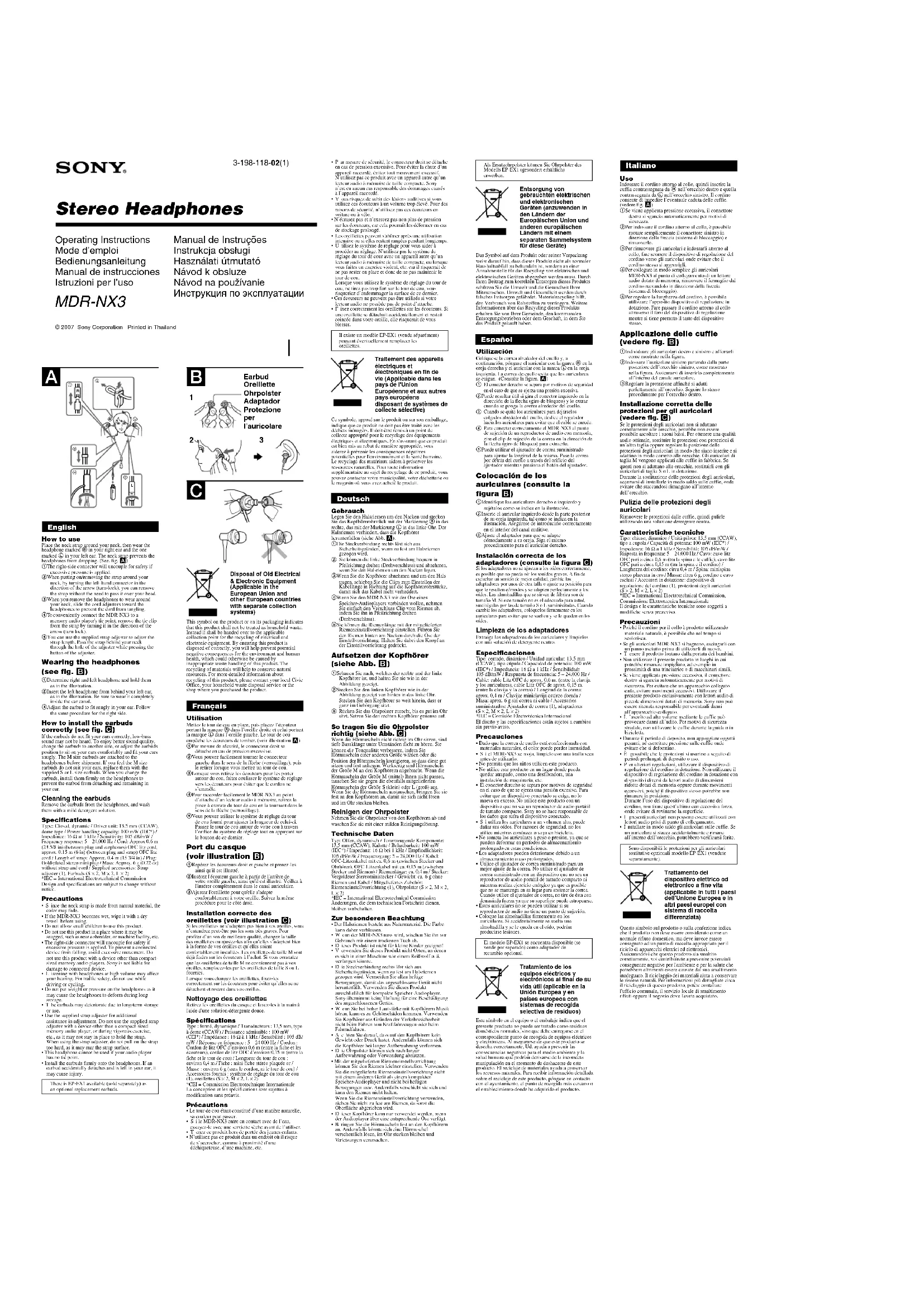Téléchargez la notice de votre Ecouteur au format PDF gratuitement ! Retrouvez votre notice MDRNX3 - SONY et reprennez votre appareil électronique en main. Sur cette page sont publiés tous les documents nécessaires à l'utilisation de votre appareil MDRNX3 de la marque SONY.