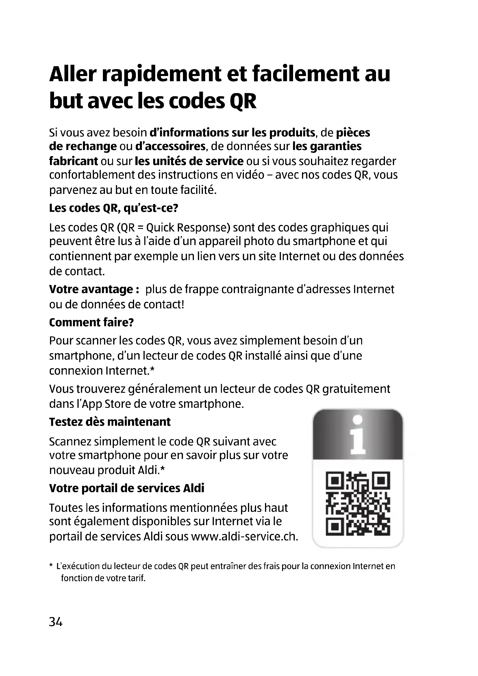 vercle du compartiment des piles vers le haut et ap- puyez dessus. Une fois la pile insérée, un signal est émis et le ra- dio-réveil recherche un signal radio. Nettoyage et entretien58 Rangement AVIS! Risque de dommages ! Des piles qui fuient risquent d’endomma- ger le radio-réveil. − Retirez la pile si vous n’utilisez le radio-ré- veil pendant une période prolongée. − Retirez la pile et nettoyez le radio-réveil. − Conservez toujours le radio-réveil dans un endroit sec et frais. − Protégez le radio-réveil des rayons directs du soleil. − Rangez le radio-réveil hors de la portée des enfants, dans un endroit fermé à clé et à une température située entre 5 °C et 20 °C (température de la pièce). Rangement59 Recherche de pannes Panne Cause Dépannage Le radio-réveil ne reçoit aucun signal. Des murs en bé- ton, les appar- tements situés en sous-sol, etc., atténuent le signal radio. La nuit, posez le radio-réveil sur un appui de fenêtre L’heure ne s’affi che pas correctement. Le radio-réveil est mal réglé. Redémarrez le radio-réveil. La pile est trop faible. Remplacez la pile (voir le chapitre « Rem- placement de la pile »). Données techniques Modèles : 16992-01/-12 Référence de l’article : 16992 Nombre d’éléments de commande : 6 boutons Plage de fréquence radio : RC-DCF Format de l’heure : 12 heures (AM/PM) / 24 heures Recherche de pannes / Données techniques60 Réglages de l’alarme : Heure de réveil uniquement du LUN au VEN 1–5 Heure de réveil uniquement les SAM et DIM 6-7 Heure de réveil du LUN au DIM 1-7 Fonction d’alarme différée : Interruption de l’alarme d’env. 8 minutes Affi chage du jour de la semaine : en 9 langues (Allemand, Anglais, Italien, Français, Néerlandais, Espagnol, Hongrois, Slovène, Danois) Plage de température ambiante : 0 °C à 50 °C (32 °F à 122 °F) Précision de mesure : env. 0,1 °C Incréments de mesure : 0,1°C Pile : 1 X 1,5 V DC AA alcaline Dimensions (L x H x P) : 82 × 82 × 35 mm (01-06) 104 x 63 x 32 mm (07-12) Comme nos produits sont constamment en développe- ment et en amélioration, des modifi cations techniques et de design peuvent survenir. Données techniques61 Déclaration de conformité Résumé de la déclaration de conformité : Par la pré- sente, nous confi rmons que la fonction de transfert sans fi l de cet appareil satisfait aux exigences de la directive 2014/53/UE. Attention ! Le fabricant n’assume aucune responsabilité pour les perturbations des signaux radio ou TV résultant d’une modifi cation non autorisée de l’ap- pareil. Ce type de modifi cations peut mettre un terme à l’autorisation d’exploitation de l’utilisateur. Tous droits réservés. Ce manuel ne doit pas être intégralement ou partiellement reproduit, copié ou modifi é par un pro- cessus mécanique ou chimique, sans l’accord écrit du fabricant. Ce manuel peut comporter des erreurs ou des fautes de frappe. Les informations fournies sont véri- fi ées régulièrement et les versions ultérieures corrigées en conséquence. Nous n’assumons aucune responsabi- lité pour les erreurs techniques ou les fautes de frappe et leurs conséquences. L’ensemble des marques com- merciales et brevets sont homologués. Vous trouverez la déclaration de conformité intégrale sur Internet sous www.gt-support.de Élimination Éliminer l’emballage Triez l’emballage avant de l’éliminer. Déposez le papier et carton au point de ramassage du papier, les fi lms au point de ramassage des matières recyclables. Déclaration de conformité / XXX62 Élimination du réveil (Utilisable dans l’Union européenne et dans les autres états européens avec des systèmes de collecte séparés de produits recyclables) Il est interdit de jeter les appareils usagés dans les ordures ménagères ! Si le réveil est inutilisable, chaque utilisateur est contraint par la loi de jeter les vieux appareils sépa- rément des déchets ménagers, p.ex. dans un point de collecte de sa commune/de son quartier. Ceci permet de garantir le recyclage correct des appareils usagés sans effet négatif sur l’environnement. C’est pourquoi les appareils électriques sont caractérisés par le symbole ci-contre. Il est interdit de jeter les piles et les batteries avec les ordures ménagères ! Tous les consommateurs sont obligés par la loi de dé- poser toutes les piles et batteries, contenant des subs- tances nocives ou non auprès d’un point d collecte dans leur commune/quartier ou dans le commerce afi n de garantir une élimination écologique. Élimination64 Arrivare all’obiettivo in modo veloce e semplice grazie ai codici QR Non importa se siete alla ricerca di informazioni relative a prodotti, pezzi di ricambio o accessori, se cercate garanzie dei produttori o centri di assistenza o se desiderate vedere comodamente un videotutorial – grazie ai nostri codici QR riuscirete ad arrivare in modo semplicissimo al vostro obiettivo. Cosa sono i codici QR? I codici QR (QR = Quick Response) sono codici grafi ci acquisibili mediante la fotocamera di uno smartphone e che contengono per esempio un link ad un sito internet o dati di contatto. Il vostro vantaggio: non si necessita più di dover digitare faticosamente indirizzi internet o dati di contatto! Ecco come si fa Per poter acquisire il codice QR si necessita semplicemente di uno smartphone, aver installato un software che legga i codici QR e di un collegamento internet. Software che leggono i codici QR sono disponibili nello App Store del vostro smartphone e in genere sono gratuiti. Provate ora Basta acquisire con il vostro smartphone il seguente codice QR per ottenere ulteriori informazioni relative al vostro prodotto ALDI. Il portale di assistenza ALDI Tutte le suddette informazioni sono disponibili anche in internet nel portale di assistenza ALDI all’indirizzo www.aldi-service.ch.