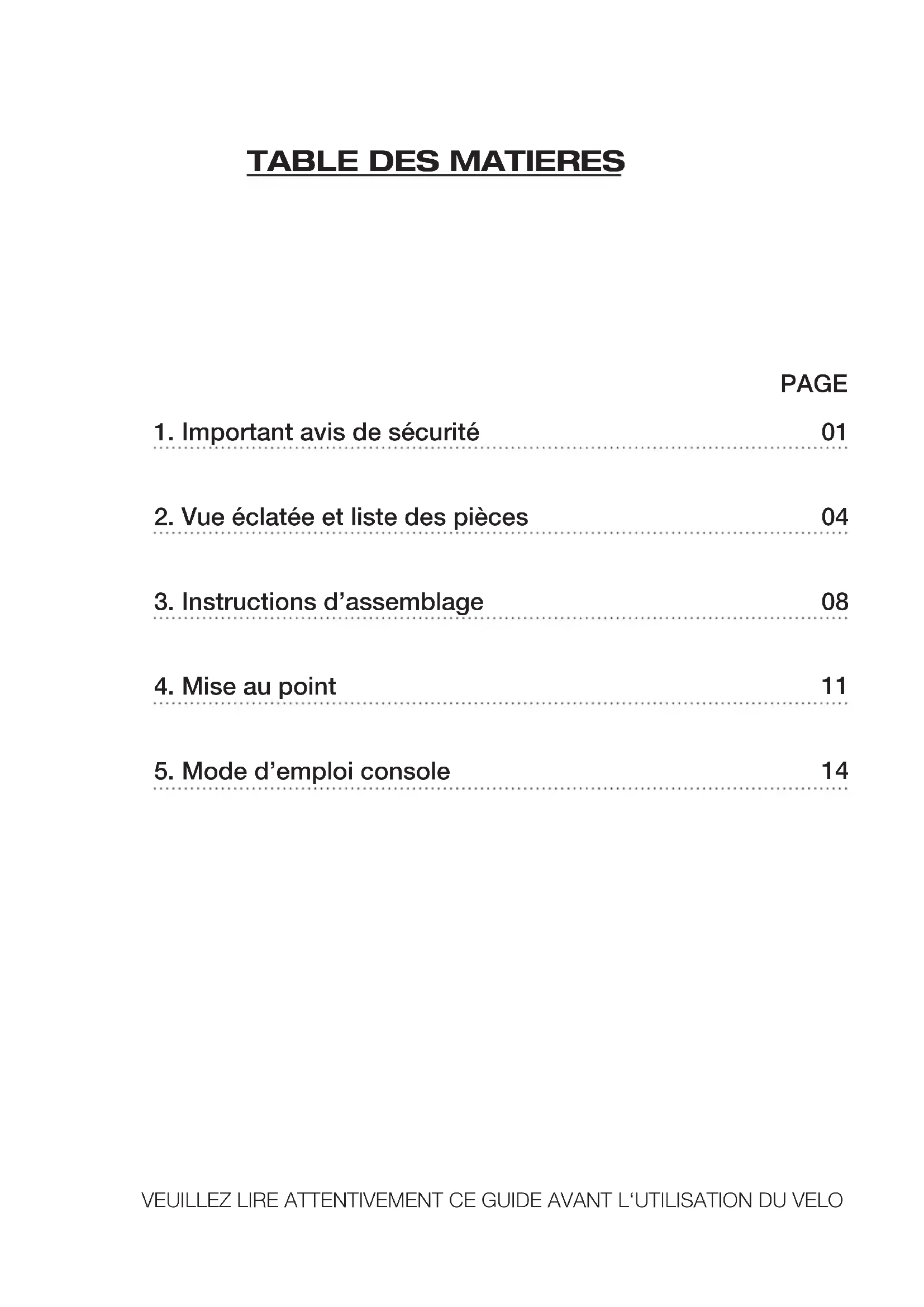 10. NE TOUCHEZ JAMAIS le vélo s‘il ne fonctionne pas correctement.AVERTISSEMENT : AVANT D‘ENTREPRENDRE TOUT