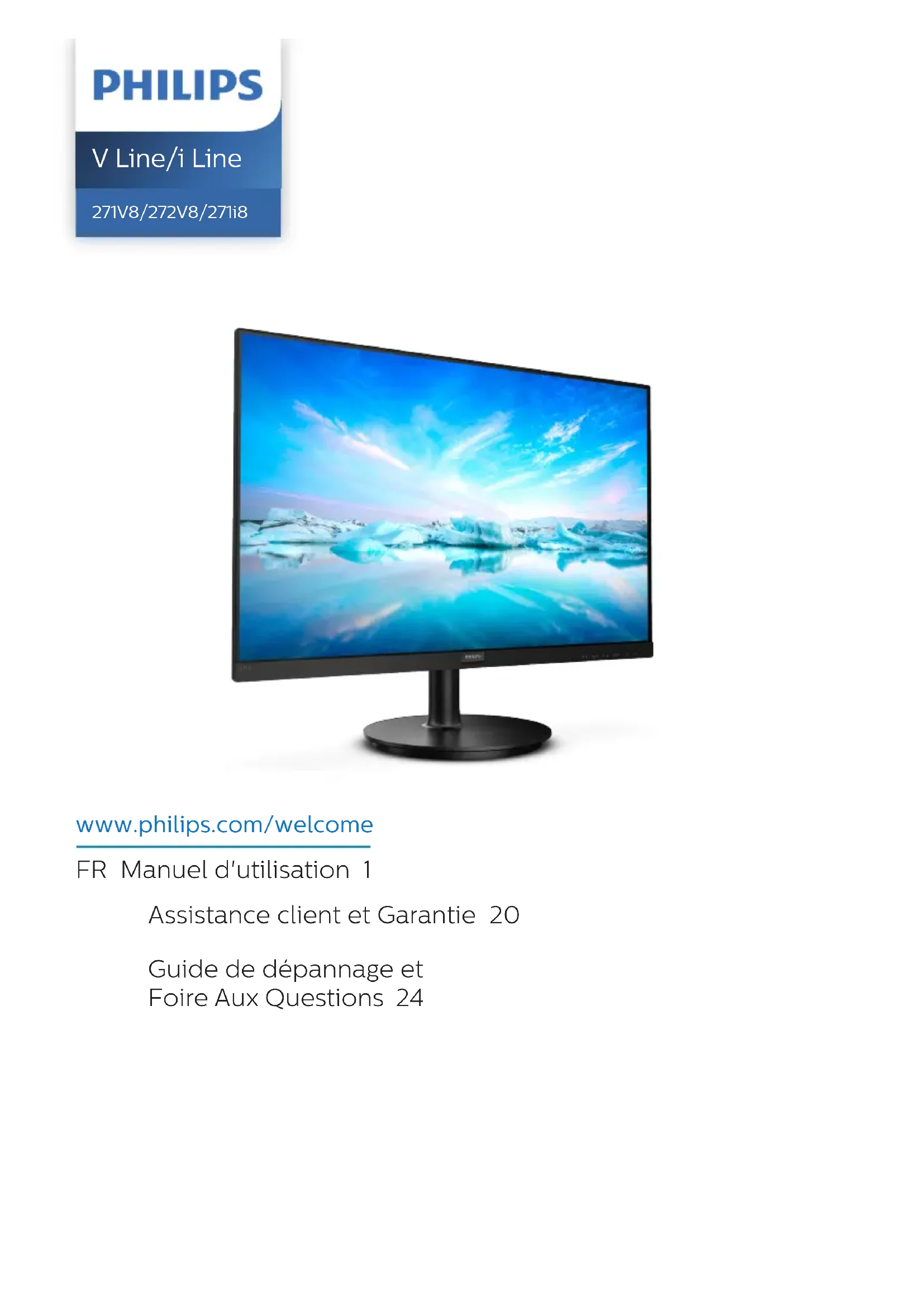 www.philips.com/welcome V Line/i Line 271V8/272V8/271i8 FR Manuel d'utilisation 1 Assistance client et Garantie 20 Guide de dépannage et Foire Aux Questions 24Table des matières