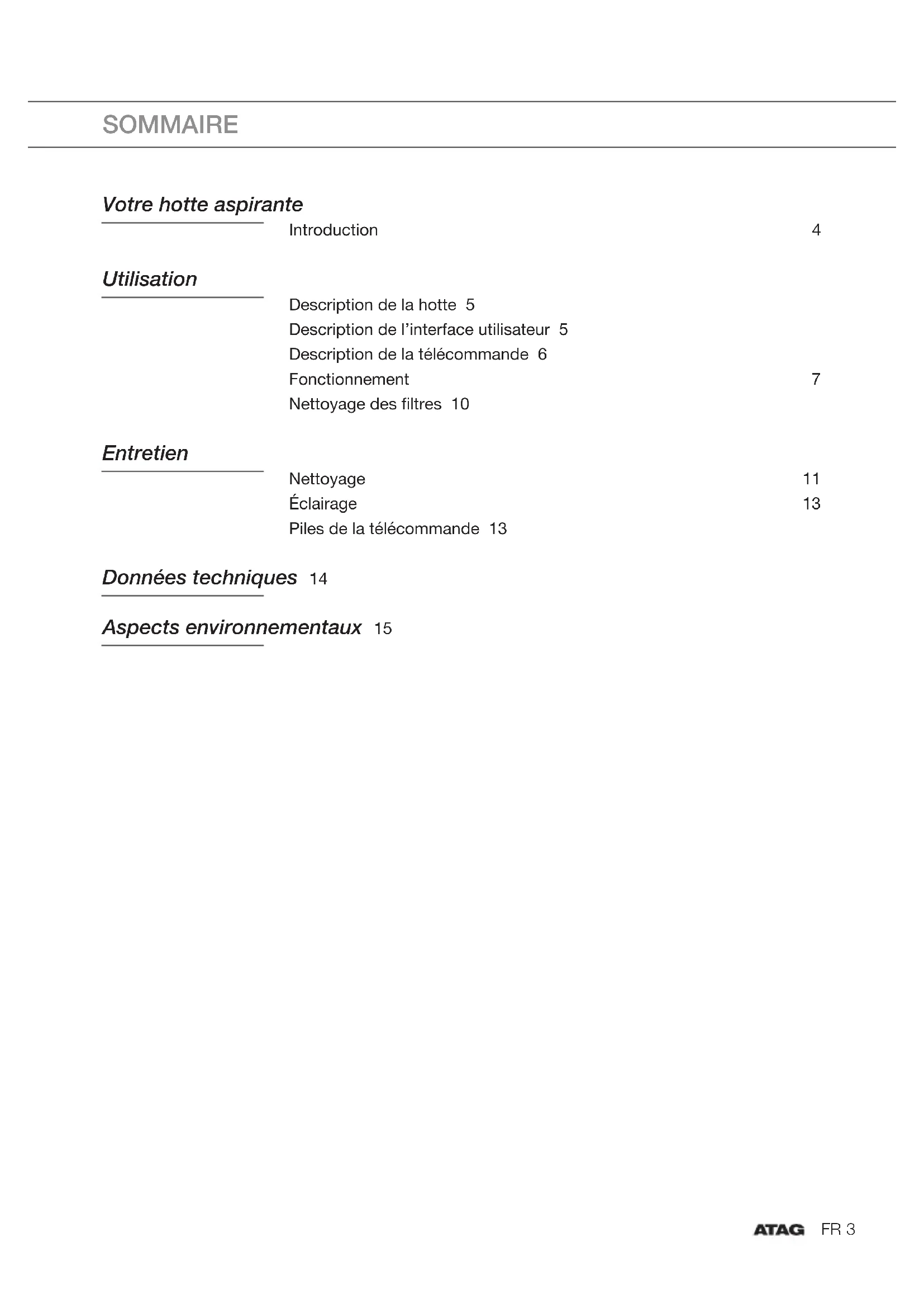 CU12711RM - Hotte Atag - Notice d'utilisation et mode d'emploi gratuit