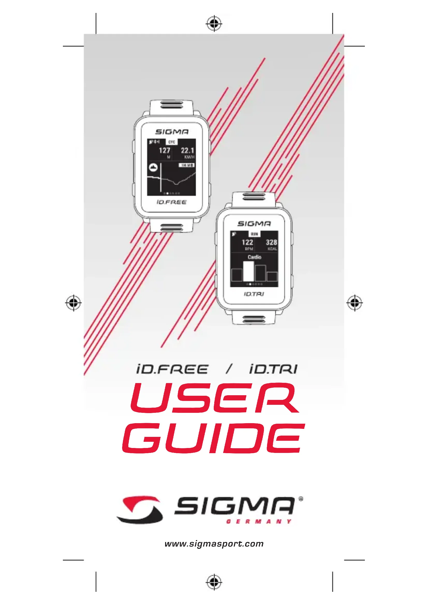 La garanzia per i prodotti SIGMA-ELEKTRO GmbH vale 24 mesi a partire dalla data di fatturazione e copre problemi meccanici o tecnici (difetti del display, problemi di trasferimento dati, supporto, vizi estetici). La garanzia è inoltre pienamente valida solo se i prodotti SIGMA SPORT vengono utilizzati esclusivamente con i componenti accessori forniti o consigliati da SIGMA SPORT. Tuttavia la garanzia non copre pile, batterie e parti soggette a usura (cinturini, gomme, fasce toraciche ecc.) nonché danni e difetti intenzionali causati dall’errato utilizzo. SIGMA-ELEKTRO GmbH Dr.-Julius-Leber-Straße 15 D-67433 Neustadt/Weinstraße Tel. assistenza. +49-(0)6321-9120-118 E-mail: kundenservice@sigmasport.com È possibile trovare un modulo di reclamo sul nostro sito web: claim.sigmasport.com Condizioni di garanzia La dichiarazione di conformità è disponibile al seguente link: ce.sigmasport.com/idfree ce.sigmasport.com/idtri La garantie sur les produits SIGMA-ELEKTRO GmbH est de 24 mois à compter de la date de la facture et porte sur les problèmes mécaniques ou techniques (défauts d’affichage, problèmes de transfert de données, support, défauts visibles). La garantie ne s’applique dans sa globalité que lorsque les produits SIGMA SPORT n’ont été utilisés qu’avec les accessoires fournis ou recommandés par SIGMA SPORT. La garantie ne concerne pas les piles, batteries et pièces d’usure (bracelets, caoutchoucs, ceintures thoraciques, etc.), ainsi que les dommages et défauts volontaires causés par une mauvaise utilisation. SIGMA-ELEKTRO GmbH Dr.-Julius-Leber-Straße 15 D-67433 Neustadt/Weinstraße Tél. Service +49-(0)6321-9120-118 E-mail: kundenservice@sigmasport.com Vous trouverez un formulaire de réclamation sur notre site Web, à l’adresse : claim.sigmasport.com Conditions de garantie Les piles ne peuvent pas être jetées dans les ordures ménagères (loi allemande relative aux piles - BattG) ! Veuillez rapporter vos piles dans un centre de collecte agréé. Les appareils électroniques ne peuvent pas être jetés dans les ordures ménagères. Veuillez rapporter votre appareil dans un centre de collecte agréé. La déclaration de conformité est disponible à l’adresse suivante : ce.sigmasport.com/idfree ce.sigmasport.com/idtri ÉliminationLI = Lithium Ionen