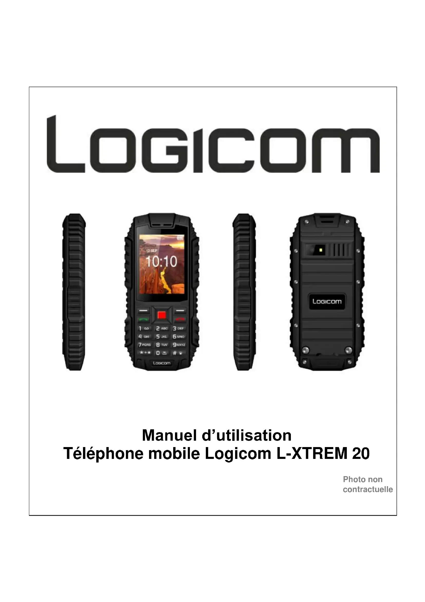 La valeur DAS corps est testée à une distance de 0 cm. ATTENTION : L'indice DAS peut varier en fonction des exigences nationales en matière de divulgation et de tests, et en fonction de la bande de fréquences du réseau. ATTENTION: Ne pas utiliser votre téléphone mobile dans certains lieux tels que les avions, les hôpitaux, les stations-services et les garages professionnels ainsi qu’en conduisant un véhicule. Les ondes électromagnétiques du téléphone mobile peuvent perturber le bon fonctionnement des appareils électroniques utilisés dans ces différents lieux.21 Nous vous conseillons d’arrêter ou de mettre votre téléphone en mode avion dans ces différents lieux pour éviter toutes perturbations. Si vous utilisez un implant électronique (Stimulateurs cardiaques, pompes à insuline, neurostimulation…). Veuillez respecter une distance de 15 cm entre le téléphone mobile et votre implant électronique. En cas d’utilisation d’un kit piéton, éloignez le téléphone du ventre pour les femmes enceintes ou du bas ventre pour les adolescents. Conseil d’utilisation pour réduire le niveau d’exposition aux rayonnements : Veillez à utiliser votre téléphone mobile dans de bonnes conditions de réception, pour diminuer la quantité de rayonnement reçus (évitez de l’utiliser dans un parking souterrain ou lors de déplacement en transport (train, voiture). Un icone de réception vous indique la qualité de réception de votre téléphone, un affichage de 4 barrettes signifie que la réception est bonne . Afin de limiter l’exposition aux rayonnements, nous vous recommandons l’usage d’un kit piéton. Afin de limiter les mauvaises conséquences de l’exposition à un rayonnement prolongé, nous conseillons aux adolescents de tenir le téléphone éloigné de leur bas ventre, et aux femmes enceintes de tenir le téléphone éloigné du ventre. Etanchéité Votre L-XTREM 20 est conforme à la norme d’étanchéité IP68 ce qui veut dire qu’il est étanche à la poussière et submersible jusqu’à une profondeur de 1.5 mètre pendant 30 minutes. ATTENTION : Nous garantissons le bon fonctionnement du produit pour une immersion jusqu’à 1.5 mètres dans de l’eau douce. Est exclue de la garantie tous problèmes de fonctionnement relatif à l’immersion dans un liquide autre que l’eau douce (eau salée, huile, acide, eau chlorée, eau de javel…) ATTENTION : l’étanchéité du produit s’applique uniquement lorsque la trappe batterie est correctement vissée et lorsque le cache en plastique protégeant le connecteur USB et la prise jack est bien en place empêchant toute infiltration d’eau.22 Champ d’application de la garantie Un formulaire de contact ainsi qu’une FAQ complète sont disponibles dans la rubrique support de notre site internet : www.logicom-europe.com Si aucune de ces plateformes n’a solutionné votre problème, veuillez contacter votre revendeur. Pour des raisons de sécurité, seule notre station technique est habilitée à intervenir sur nos produits, dans cette optique nous ne fournissons aucune pièce détachée. La garantie fournisseur LOGICOM est valable pour un usage normal du produit tel qu’il est défini dans le cadre de la notice d’utilisation. Sont exclues de cette garantie, les détériorations dues à une cause étrangère à l’appareil. En particulier, la garantie ne s’applique pas si l’appareil a été endommagé à la suite d’un choc ou d’une chute, d’une fausse manœuvre, d’un branchement non conforme aux instructions mentionnées dans la notice, de l’effet de foudre, de surtension secteur, d’une protection insuffisante contre la chaleur, l’humidité ou le gel. La garantie s’étend uniquement à la France Métropolitaine. La garantie ne couvre pas les manuels d'utilisation, ni les applications, réglages, contenus ou données quel qu'il soit. La garantie ne couvre pas l'usure normale du produit. (Ecrans, batteries et appareil photo) La garantie ne couvre pas toute détérioration du produit due à une mauvaise utilisation, y compris notamment ceux causés par des objets, une pression, une chute. La garantie ne couvre pas toute utilisation du produit non conforme aux précautions d'emploi stipulées dans le manuel d'utilisation. La garantie ne couvre pas les défauts occasionnés au produit par un autre produit connecté ou utilisé avec, un accessoire ou un logiciel non fourni par Logicom. La garantie ne couvre pas tous dommages occasionnés sur la batterie. La garantie ne couvre pas le produit ou ses accessoires s'il a été démonté ou modifié d'une quelconque façon. La garantie ne couvre pas tout produit non identifiable par son numéro de série ou le(s) numéro(s) IMEI. Si ses éléments ont été retirés, effacés, modifiés ou rendu illisible, la garantie ne s'applique pas. La garantie ne couvre pas les dommages effectués sur le produit dus à une exposition à l'humidité, à des conditions ce chaleur ou froid extrêmes, à la corrosion, à l'oxydation, avec tout liquide quel qu'il soit. La garantie ne couvre pas toute détérioration de(s) lecteur(s) SIM ou lecteur MicroSD. La garantie ne couvre pas tout dégât relatif à une infiltration d’eau par la trappe batterie et/ou le cache en plastique USB/JACK suite à une mauvaise manipulation. En tout état de cause, la garantie légale pour vices cachés s’appliquera conformément aux articles 1641 et suivants du Code Civil. Fabriqué en RPC © 2016 Logicom SA.23