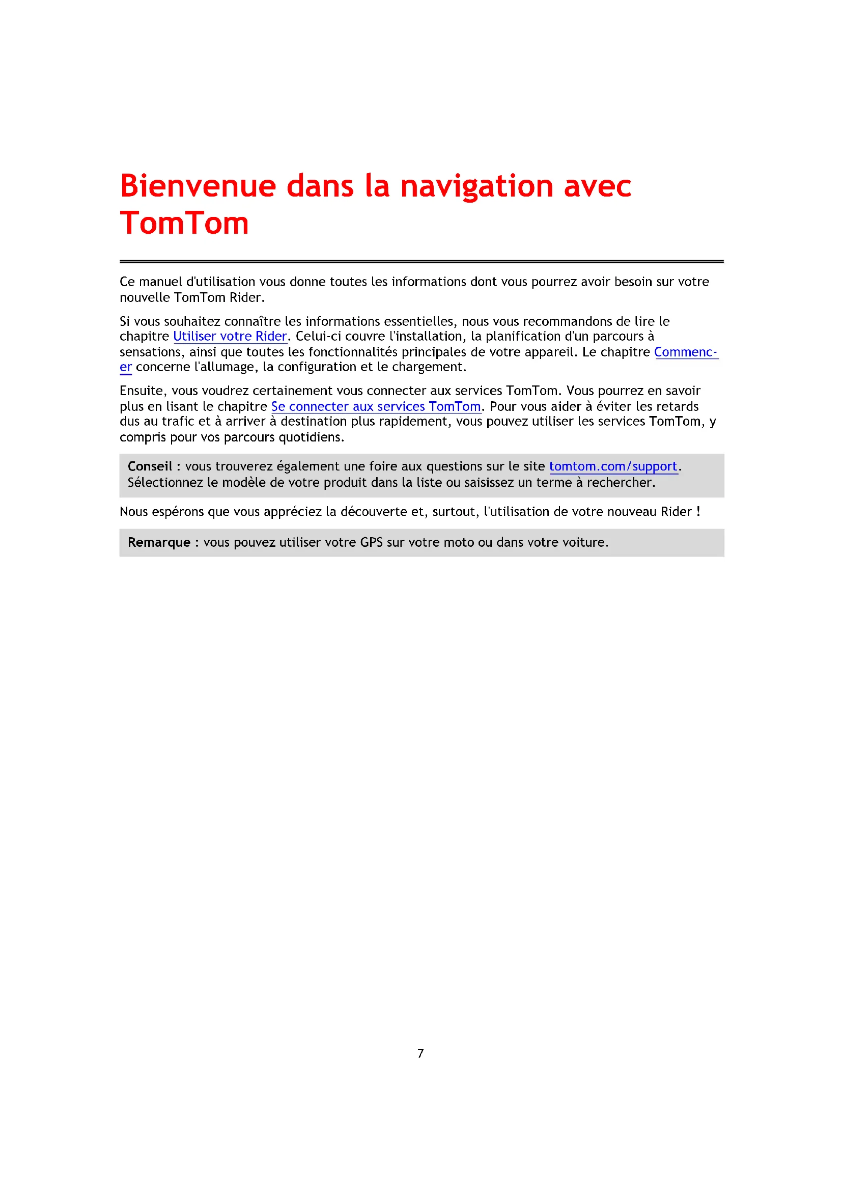 Téléchargez la notice de votre Navigateur au format PDF gratuitement ! Retrouvez votre notice RIDER 450 - TOMTOM et reprennez votre appareil électronique en main. Sur cette page sont publiés tous les documents nécessaires à l'utilisation de votre appareil RIDER 450 de la marque TOMTOM.