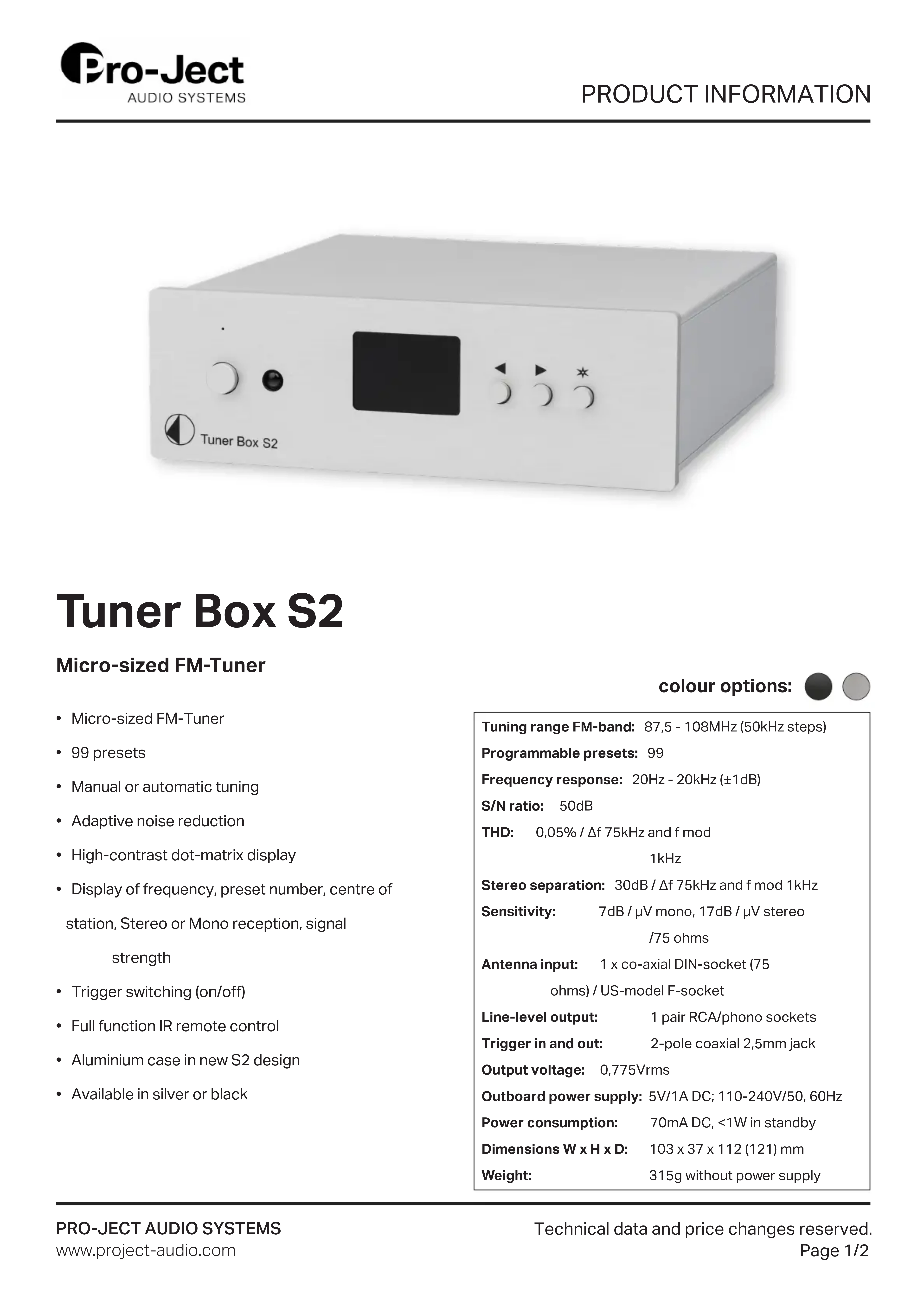 Tuner Box S2 - Récepteur audio PRO-JECT - Notice d'utilisation et mode d'emploi gratuit