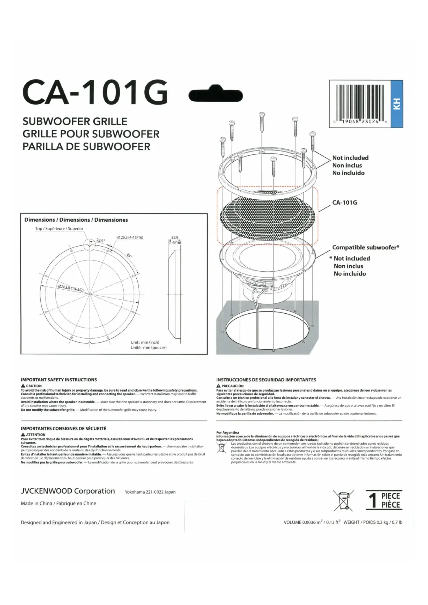 CA101G - Caisson de basses KENWOOD - Notice d'utilisation et mode d'emploi gratuit