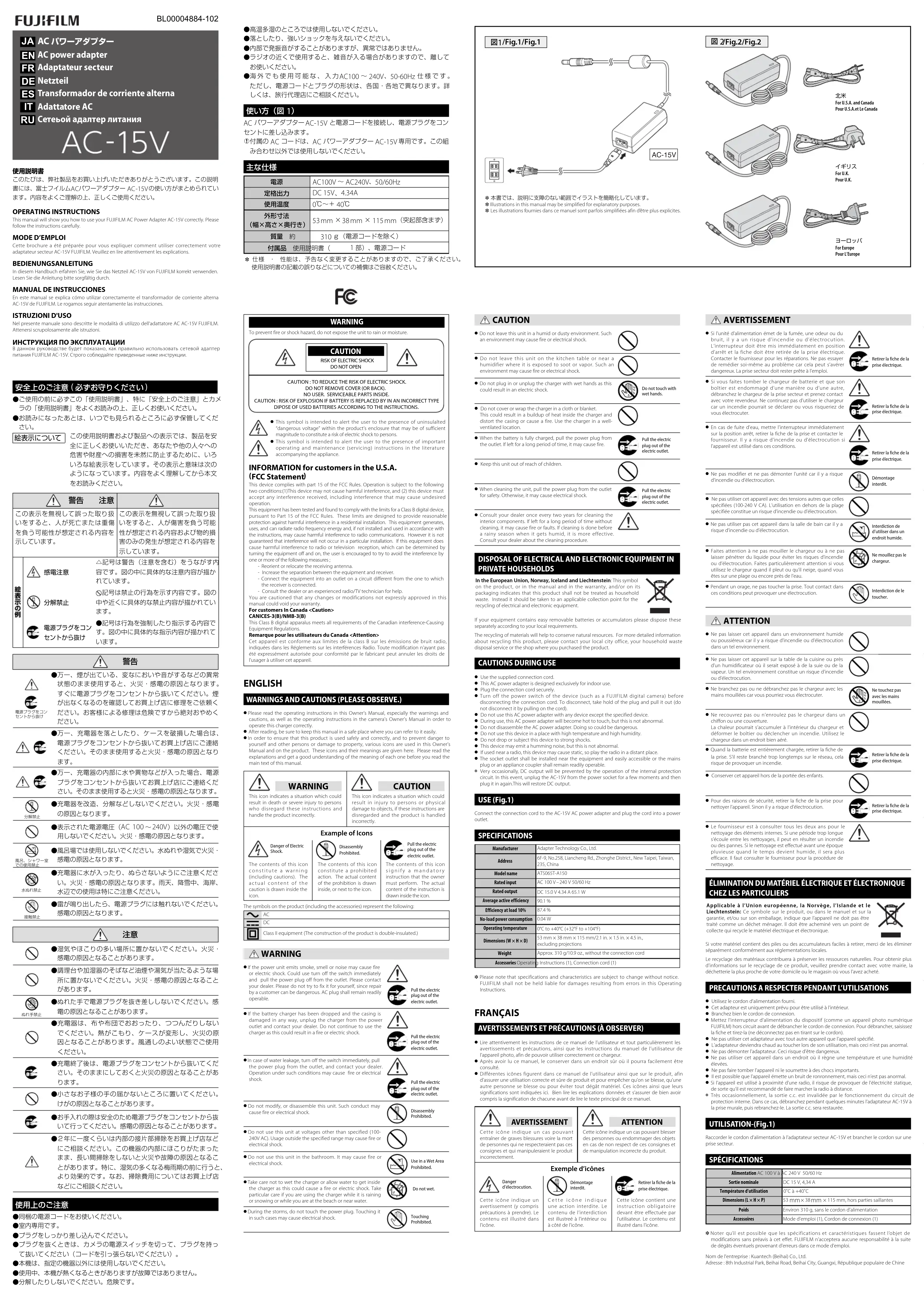 AC15V - Chargeur de piles FUJIFILM - Notice d'utilisation et mode d'emploi gratuit