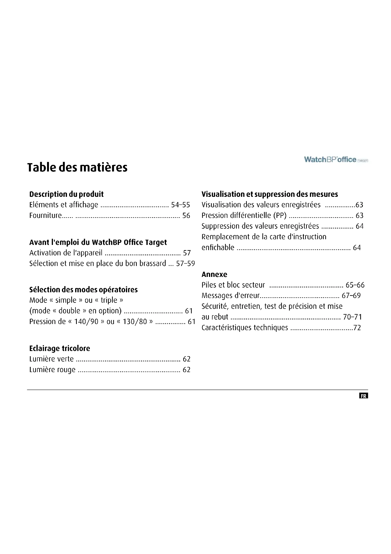 - Avant l'emploi du WatchBP Ofce Target Activation de l'appareil p. 57