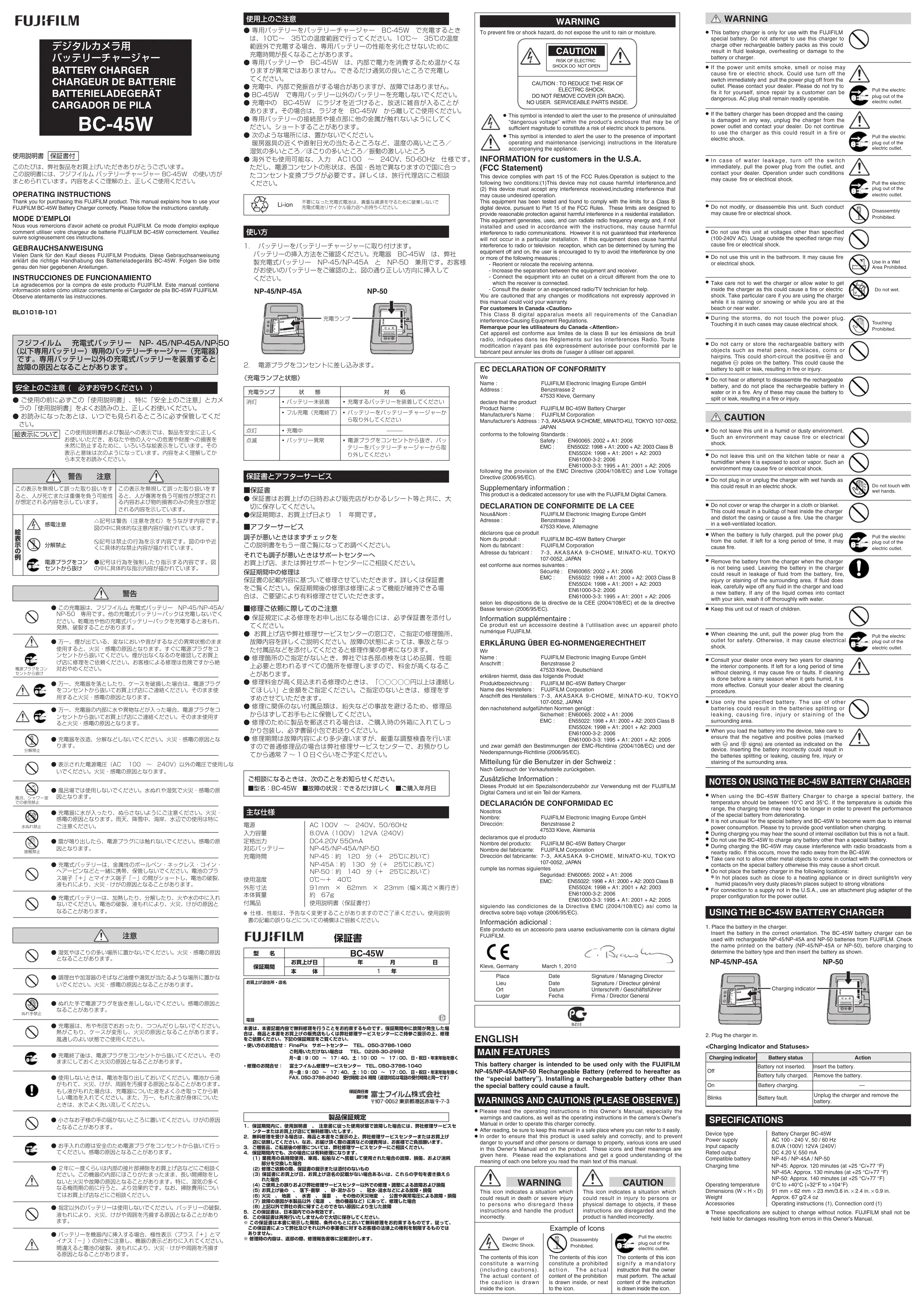 BC45W - Chargeur de piles FUJIFILM - Notice d'utilisation et mode d'emploi gratuit