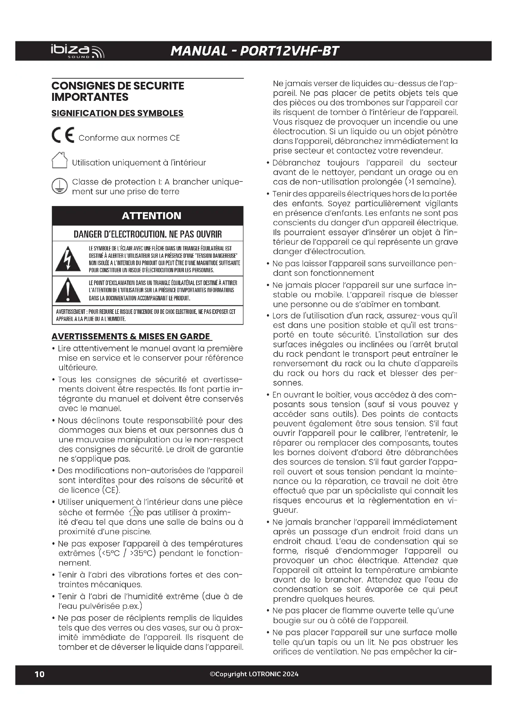 Retrouvez gratuitement la notice de l'appareil PORT12VHFBT IBIZA SOUND au format PDF.