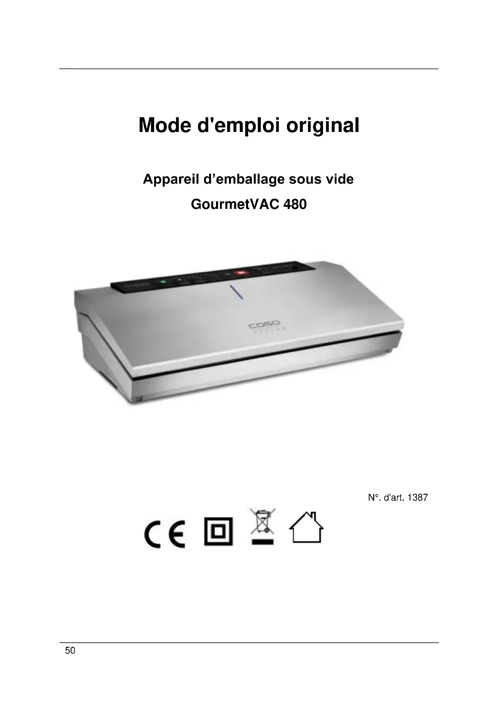 Retrouvez gratuitement la notice de l'appareil GourmetVAC 480 CASO au format PDF.