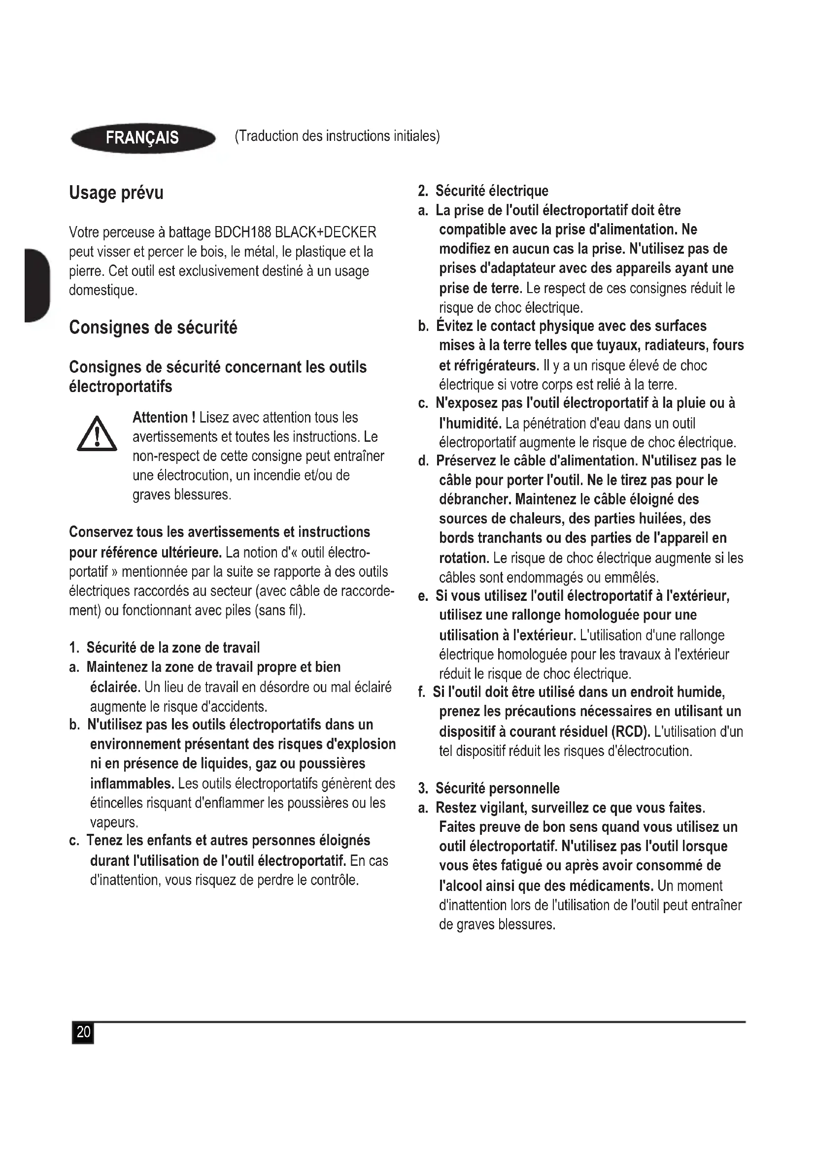 MODE D'EMPLOI BDCH188 BLACK & DECKER