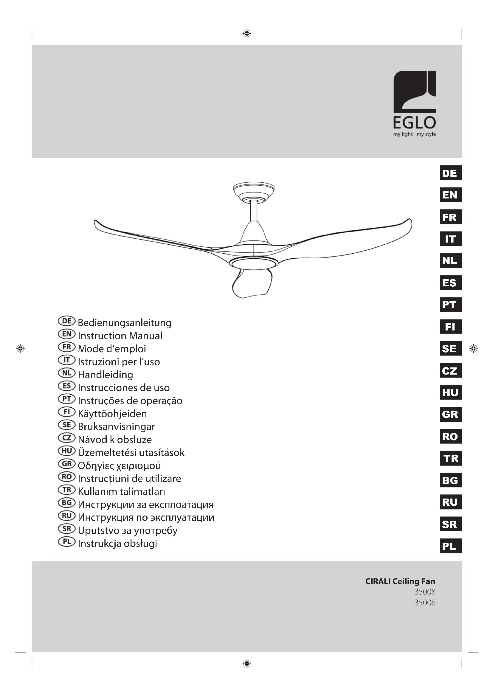 Cirali - Ventilateur EGLO - Notice d'utilisation et mode d'emploi gratuit