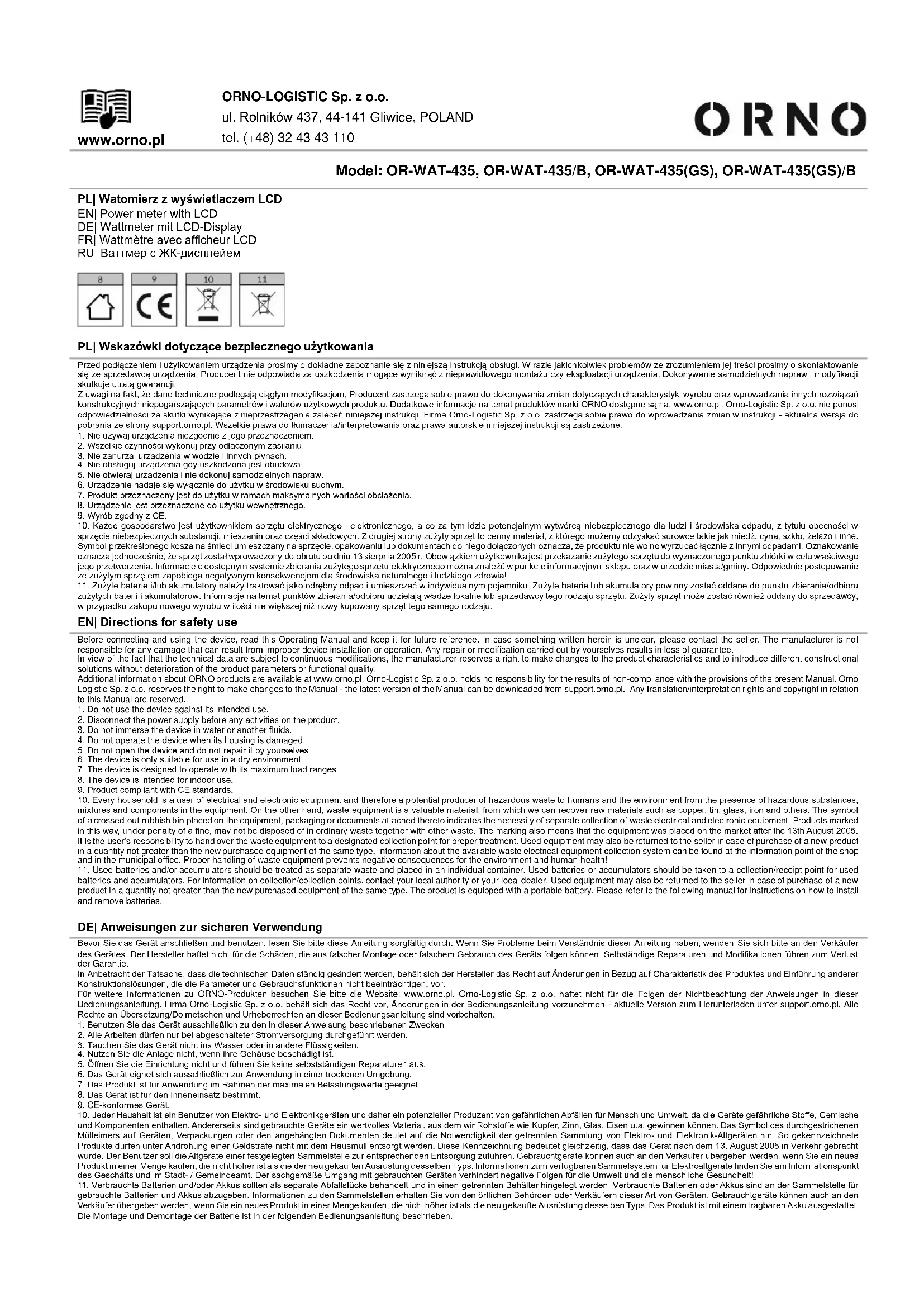 ORWAT435(GS) - équipements de mesure ORNO - Notice d'utilisation et mode d'emploi gratuit