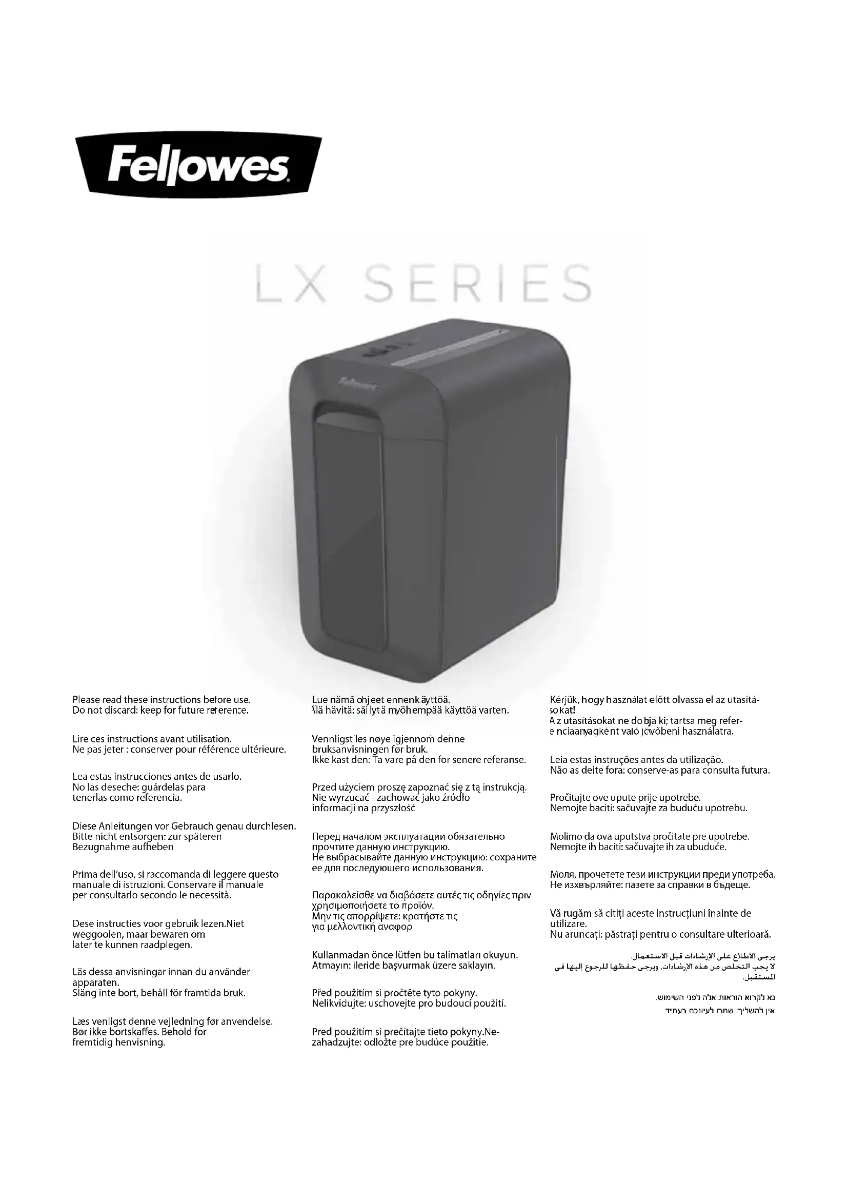 Téléchargez la notice de votre Destructeur de document au format PDF gratuitement ! Retrouvez votre notice Powershred LX65 - FELLOWES et reprennez votre appareil électronique en main. Sur cette page sont publiés tous les documents nécessaires à l'utilisation de votre appareil Powershred LX65 de la marque FELLOWES.