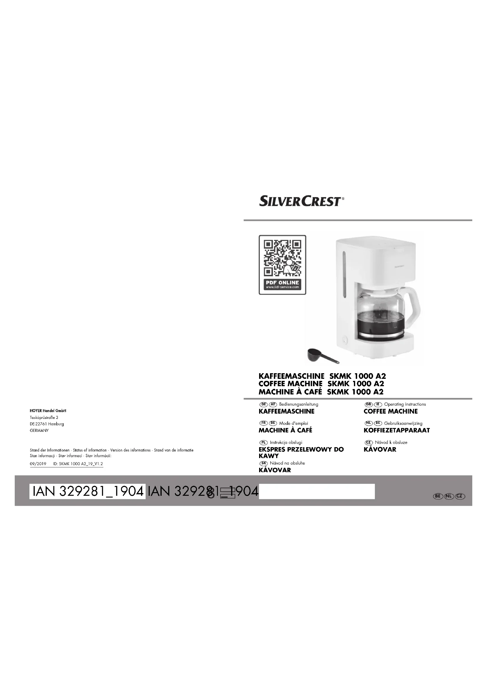 SKMK 1000 A2 - Machine à café SILVERCREST - Notice d'utilisation et mode d'emploi gratuit