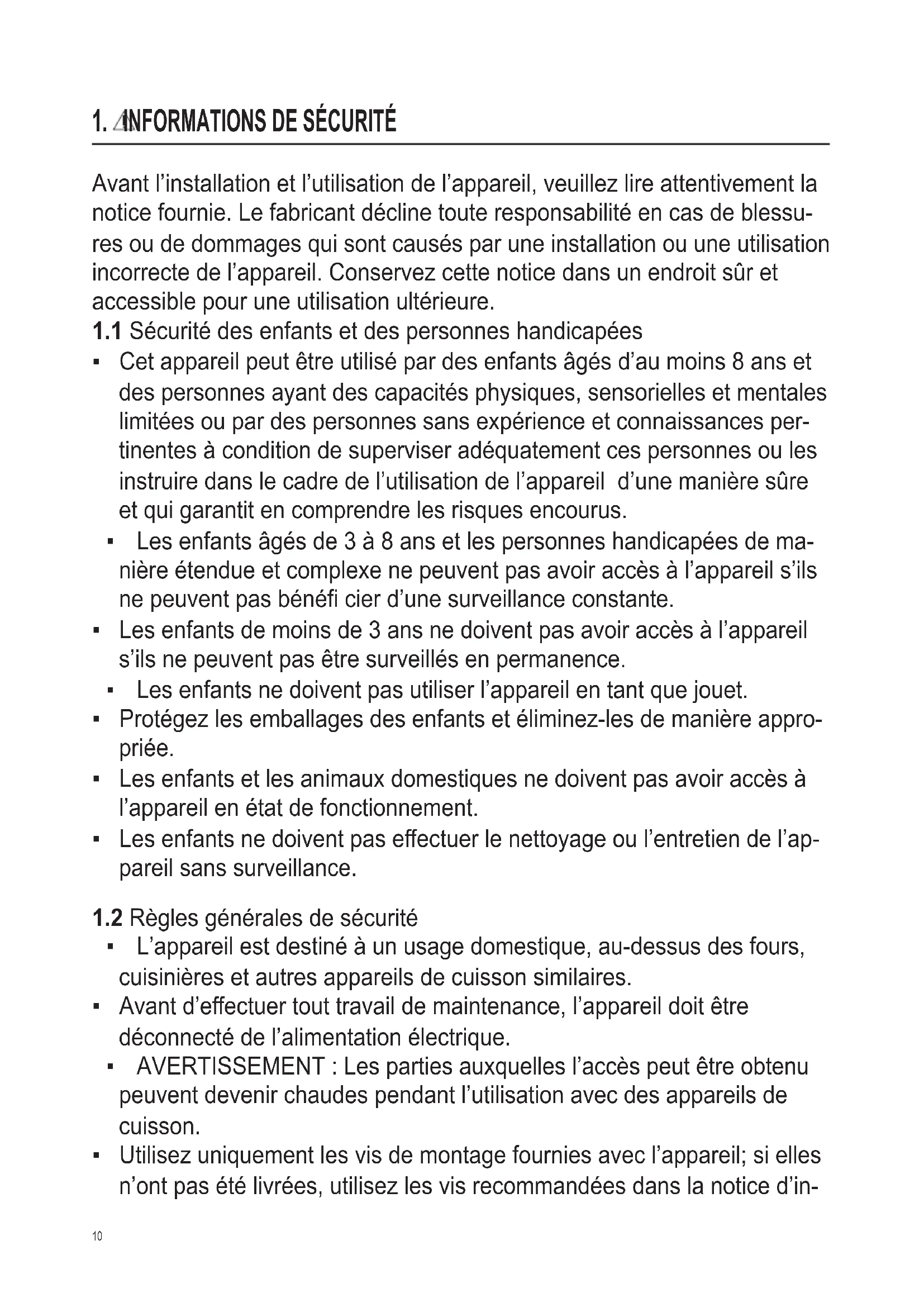 - Cet appareil peut être utilisé par des enfants âgés d’au moins 8 ans et des personnes ayant des capacités physiques, sensorielles et mentales limitées ou par des personnes sans expérience et connaissances per- tinentes à condition de superviser adéquatement ces personnes ou les instruire dans le cadre de l’utilisation de l’appareil d’une manière sûre et qui garantit en comprendre les risques encourus.