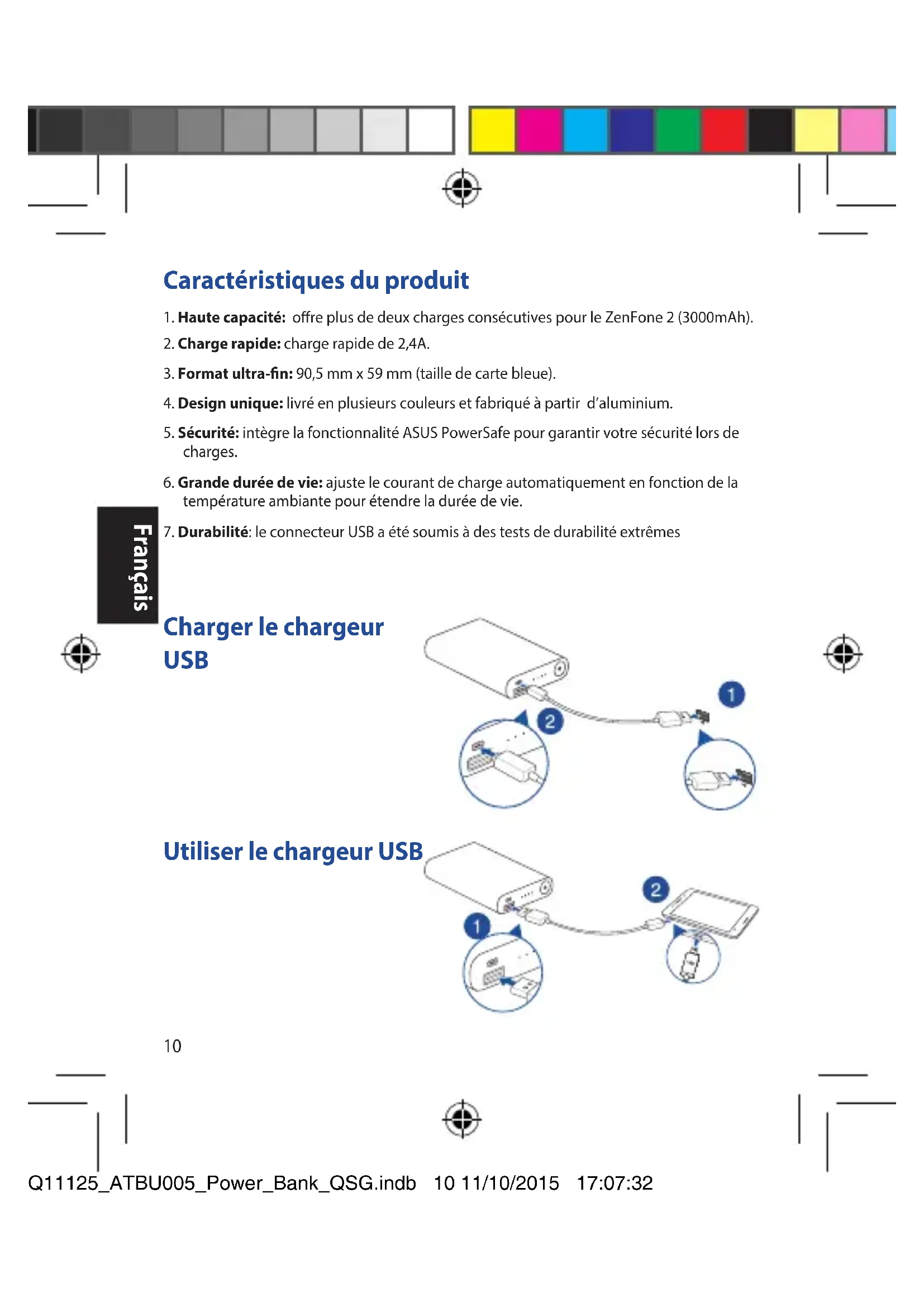 Q11125_ATBU005_Power_Bank_QSG.indb 9 11/10/2015 17:07:3210 Français Français Caractéristiques du produit