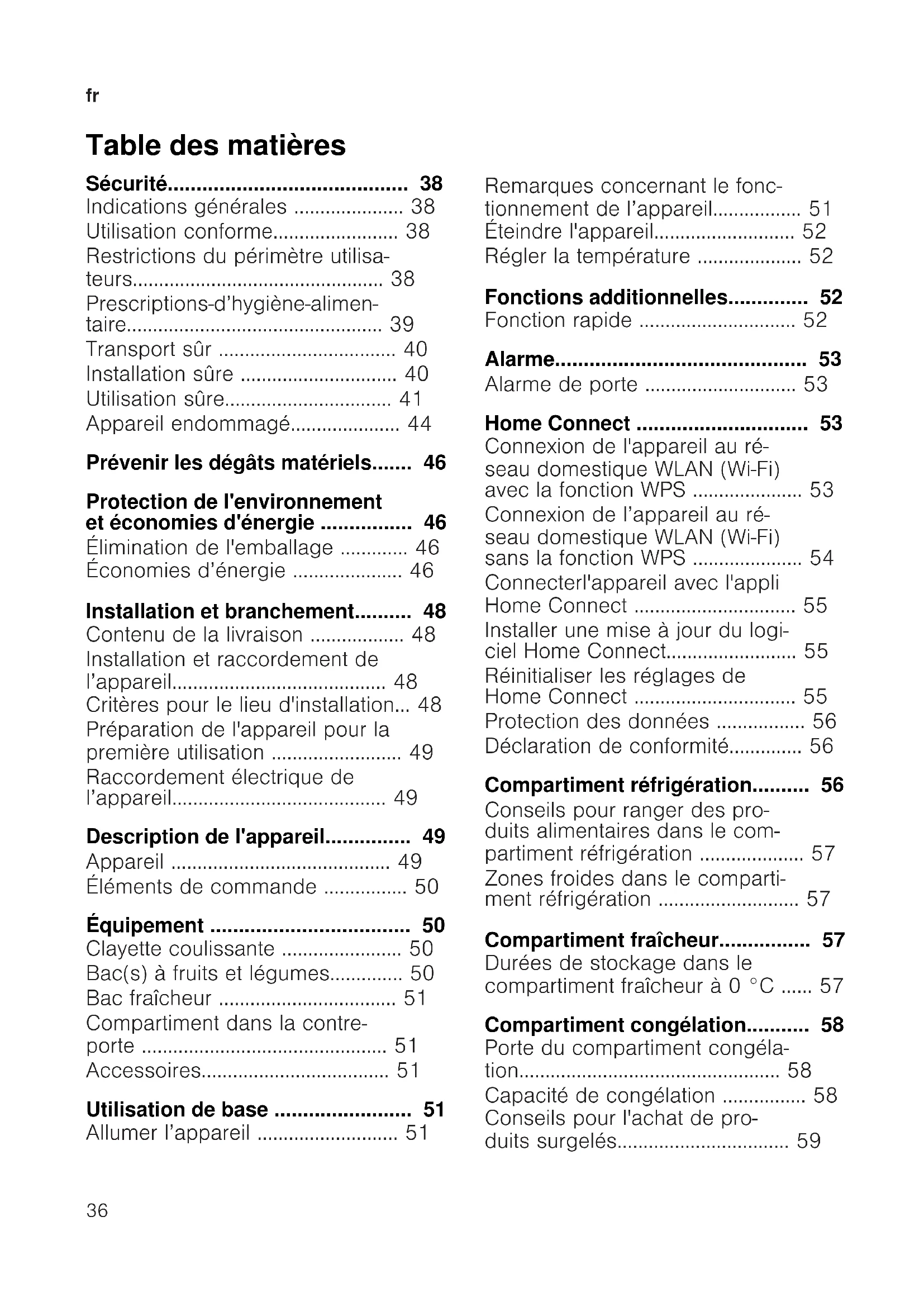 - Durées de stockage dans le compartiment fraîcheur à 0°C p. 57