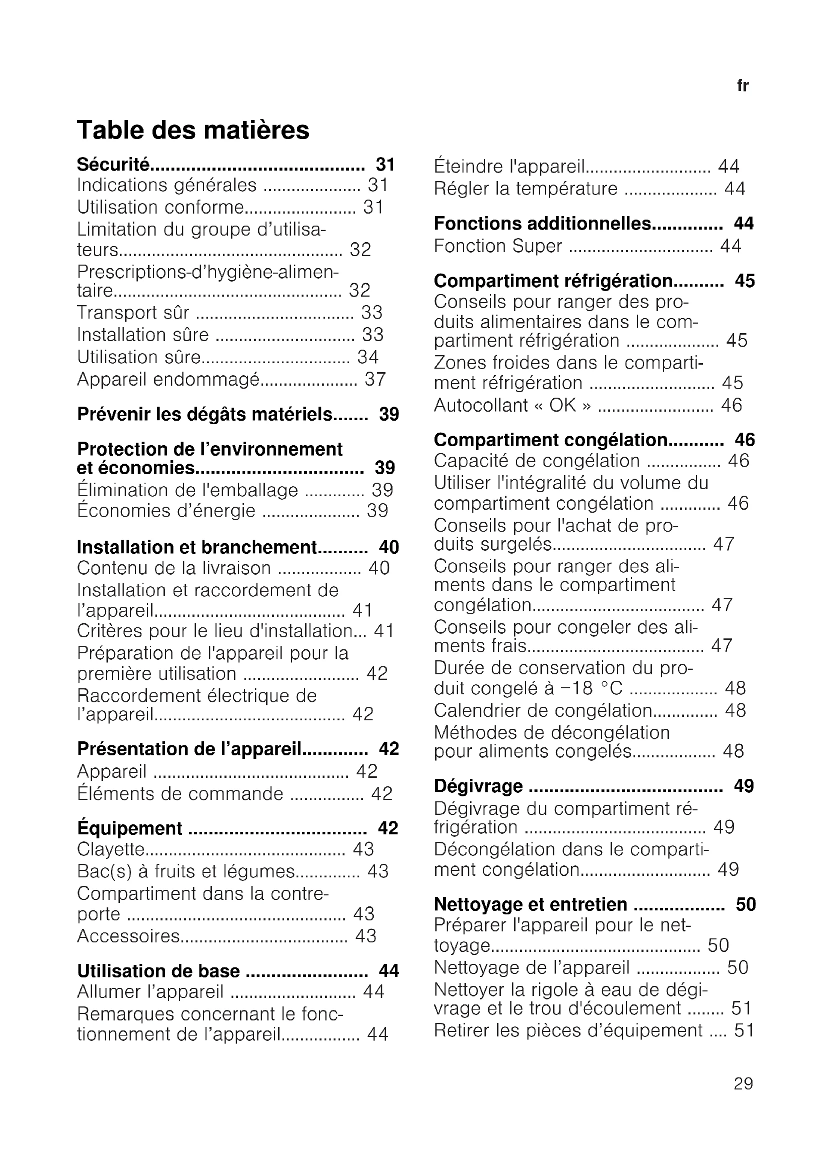 - Dégivrage p. 49