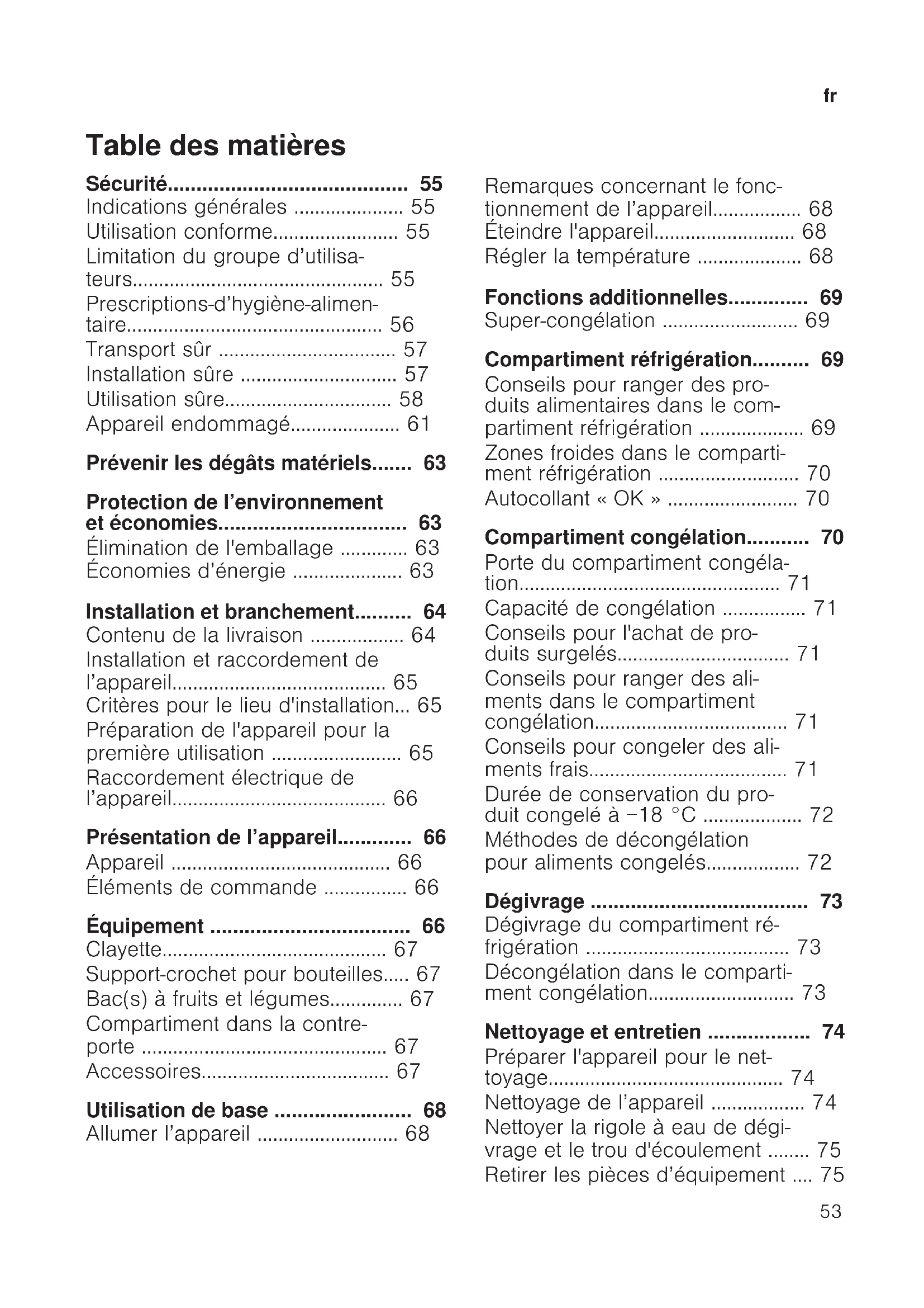 - Dégivrage p. 73
