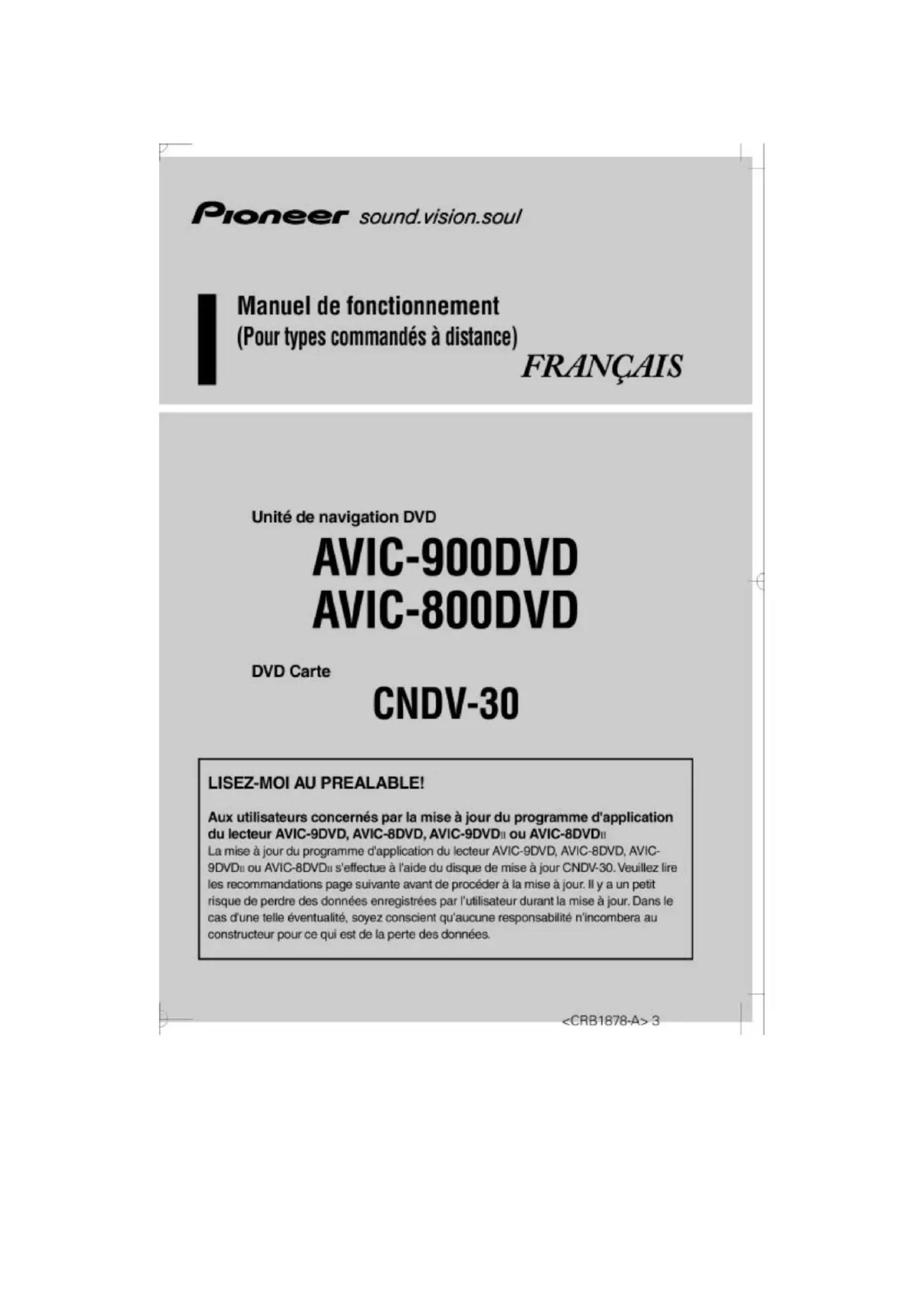 MODE D'EMPLOI CNDV30 PIONEER