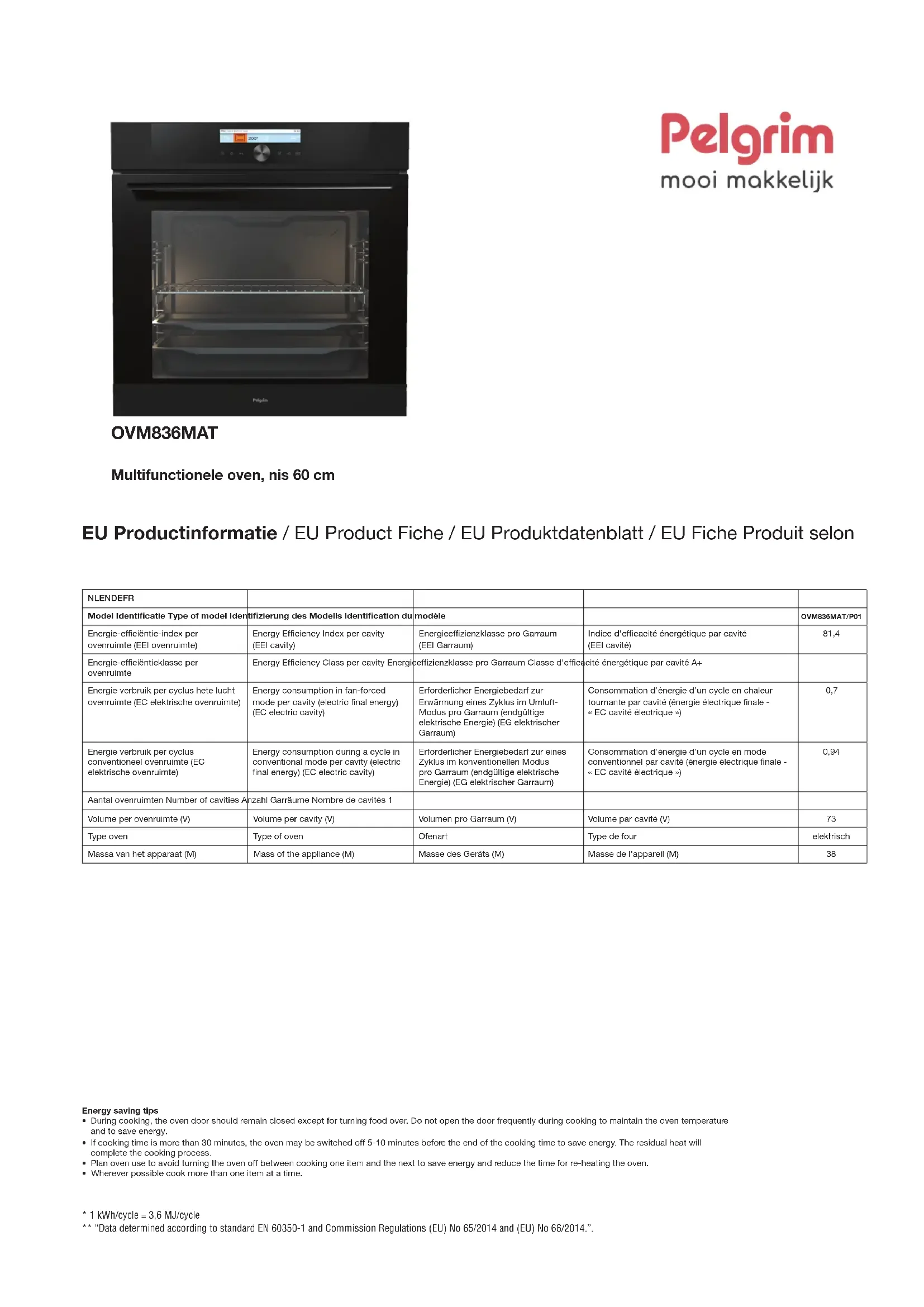 OVM836MAT - Four Pelgrim - Notice d'utilisation et mode d'emploi gratuit