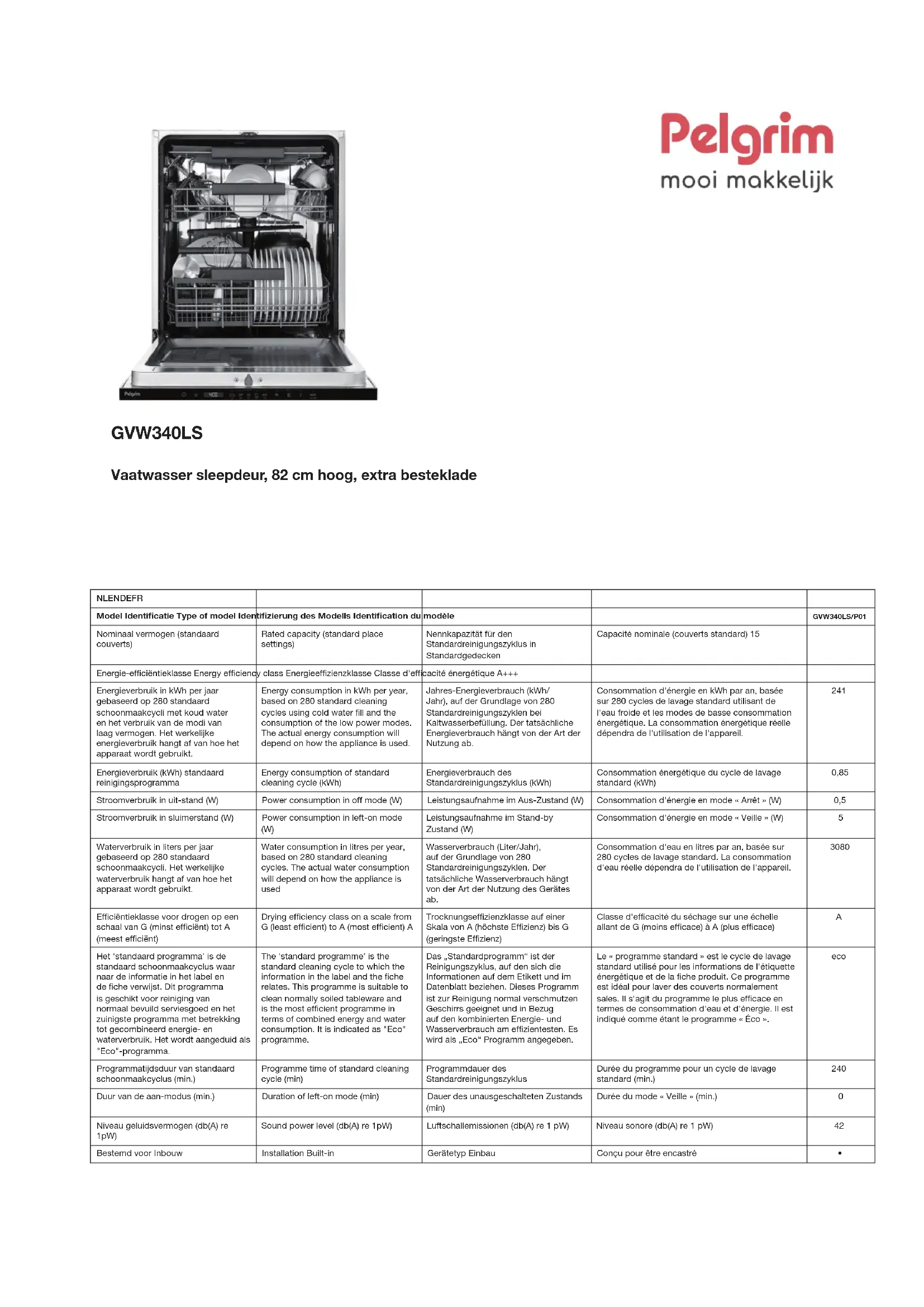 GVW340LS - Lave-vaisselle Pelgrim - Notice d'utilisation et mode d'emploi gratuit