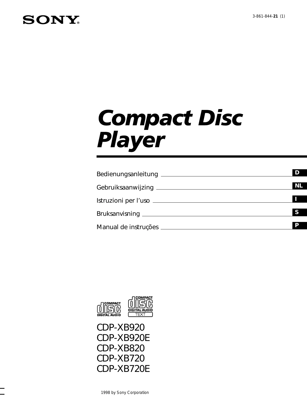 Téléchargez la notice de votre Lecteur CD au format PDF gratuitement ! Retrouvez votre notice CDP-720 - SONY et reprennez votre appareil électronique en main. Sur cette page sont publiés tous les documents nécessaires à l'utilisation de votre appareil CDP-720 de la marque SONY.