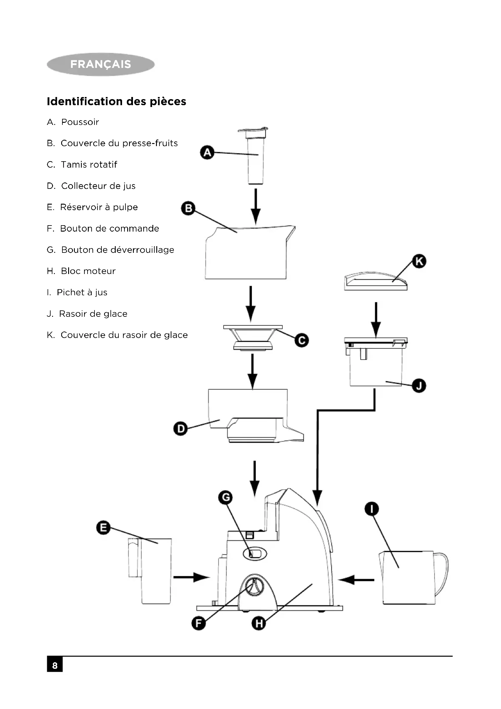 (K) et verrouillez-le en position en le tournant dans le sens antihoraire. Utilisation Fabrication de jus