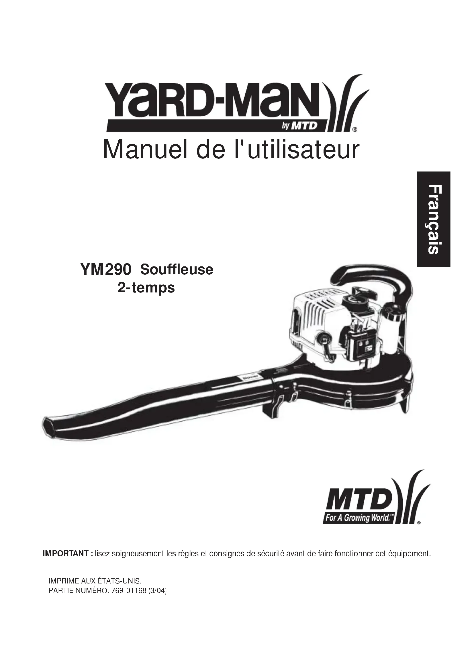 YM290 - Souffleur Yard-Man - Notice d'utilisation et mode d'emploi gratuit