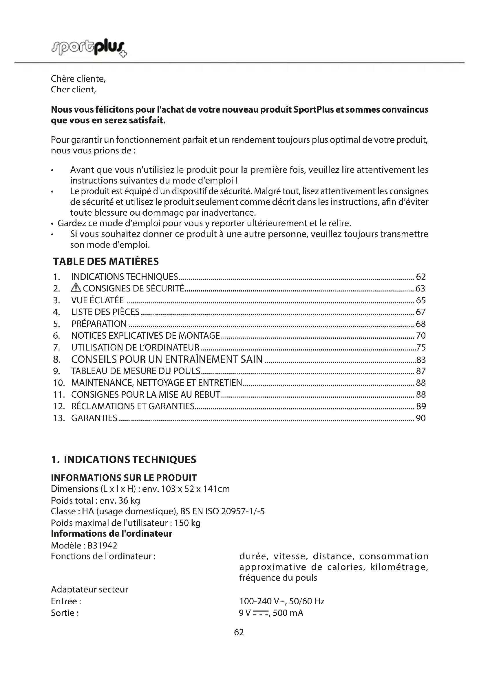Retrouvez gratuitement la notice de l'appareil SPHT9600iE SportPlus au format PDF.