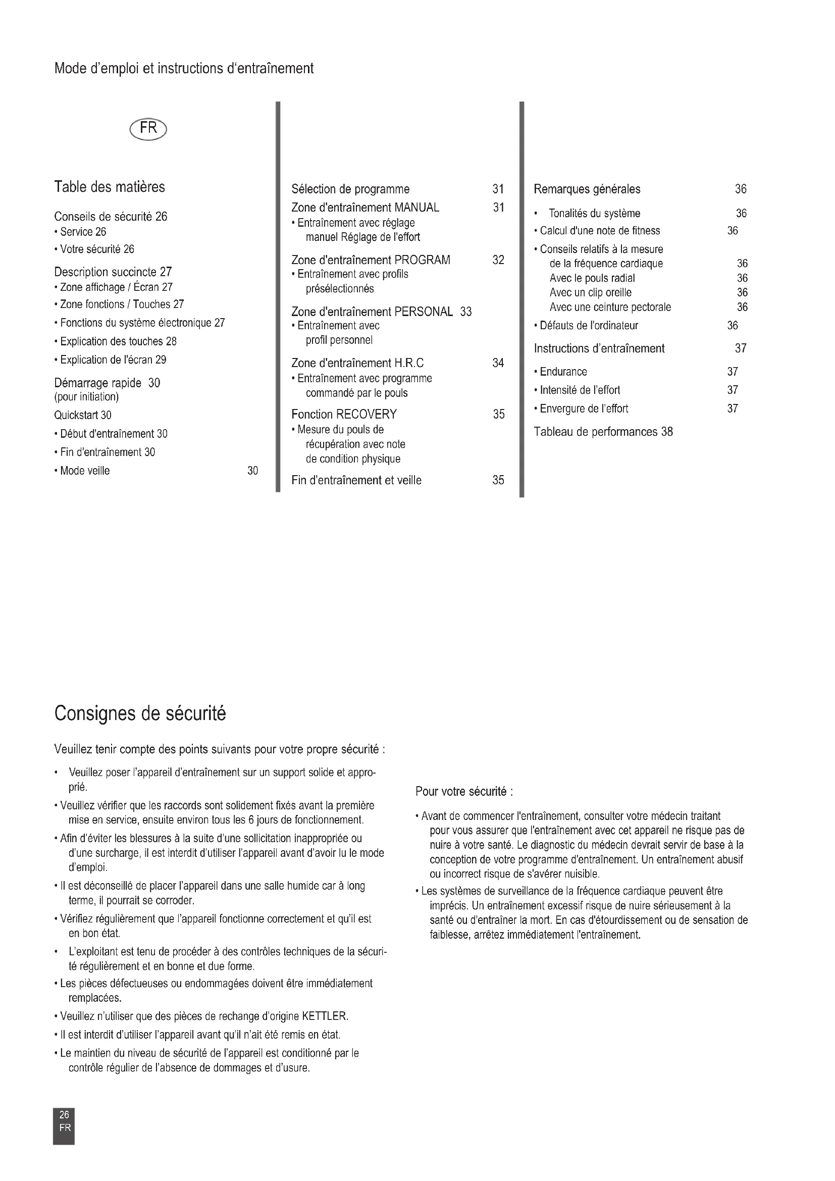- Défauts de l'ordinateur 36 Instructions d’entraînement 37
