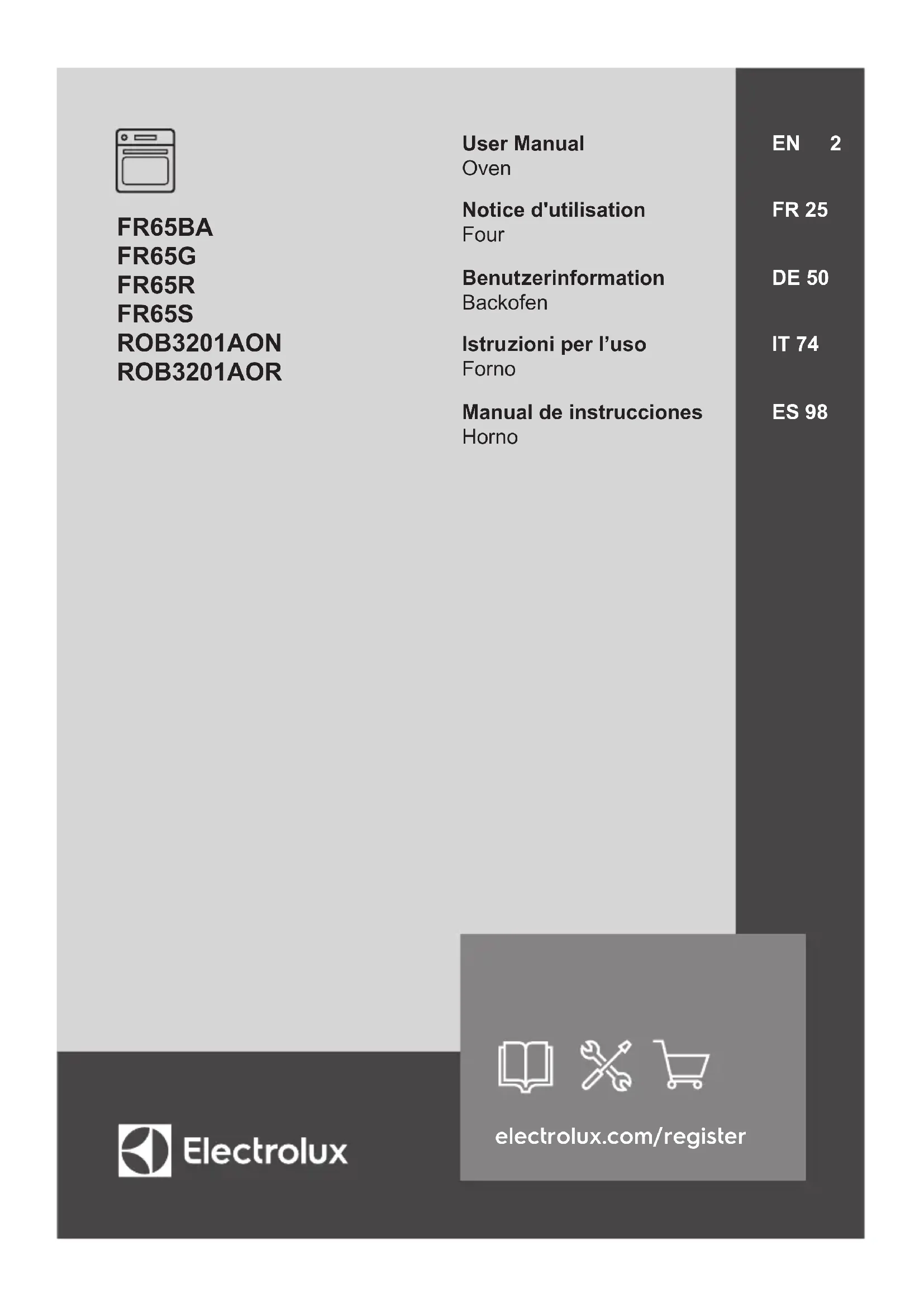 FR65G - Four ELECTROLUX - Notice d'utilisation et mode d'emploi gratuit