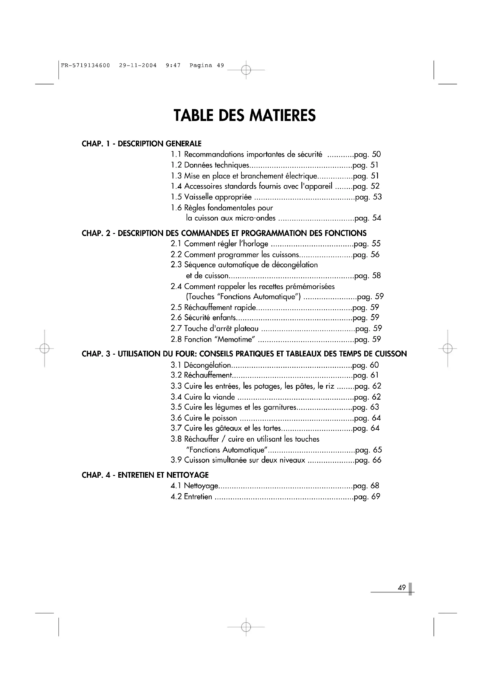 et de cuisson........................................................pag. 58
