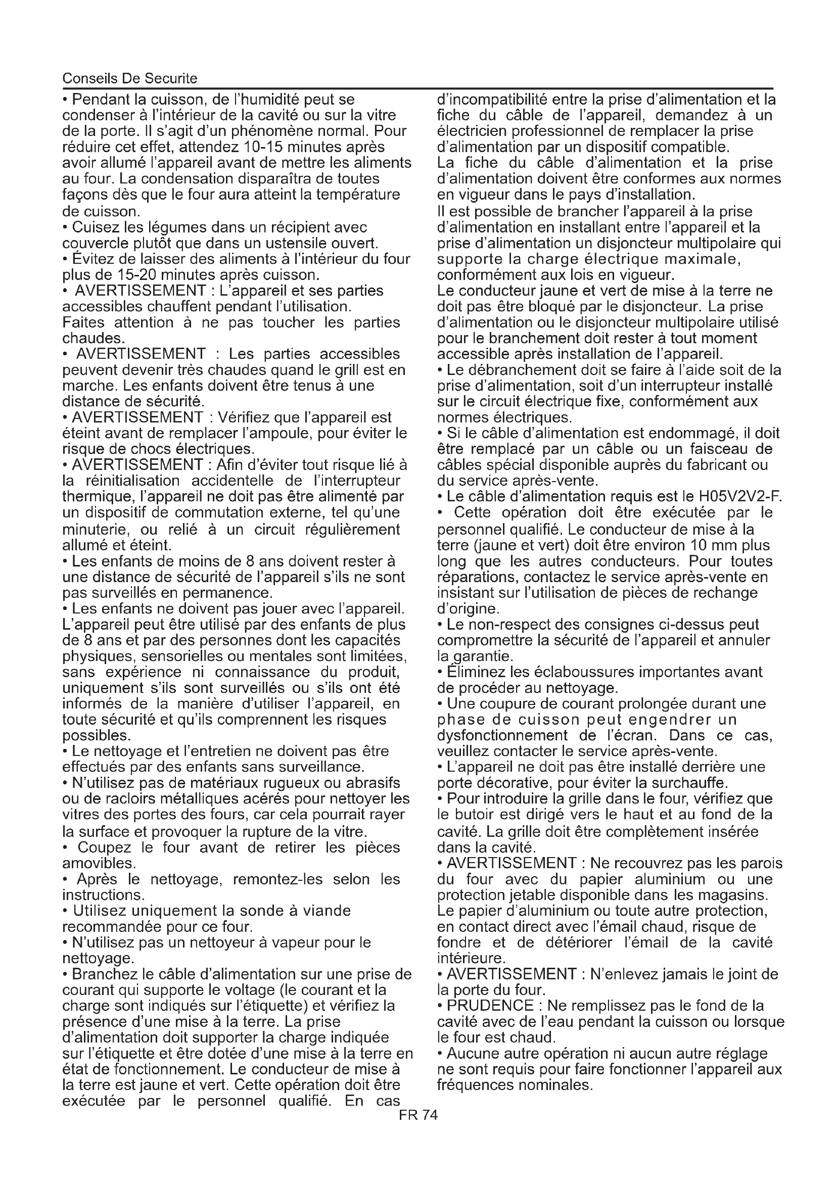 - Utilisez uniquement la sonde à viande recommandée pour ce four. Conseils De Securite FR 74