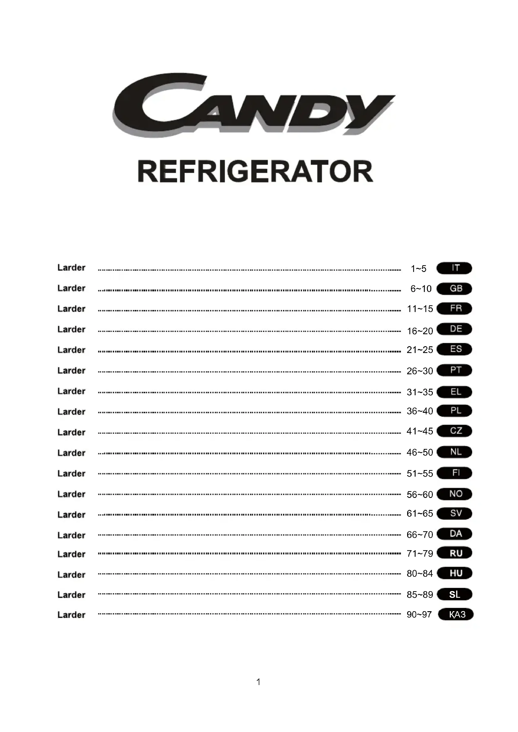 CCTLS542WHRU - Réfrigérateur CANDY - Notice d'utilisation et mode d'emploi gratuit