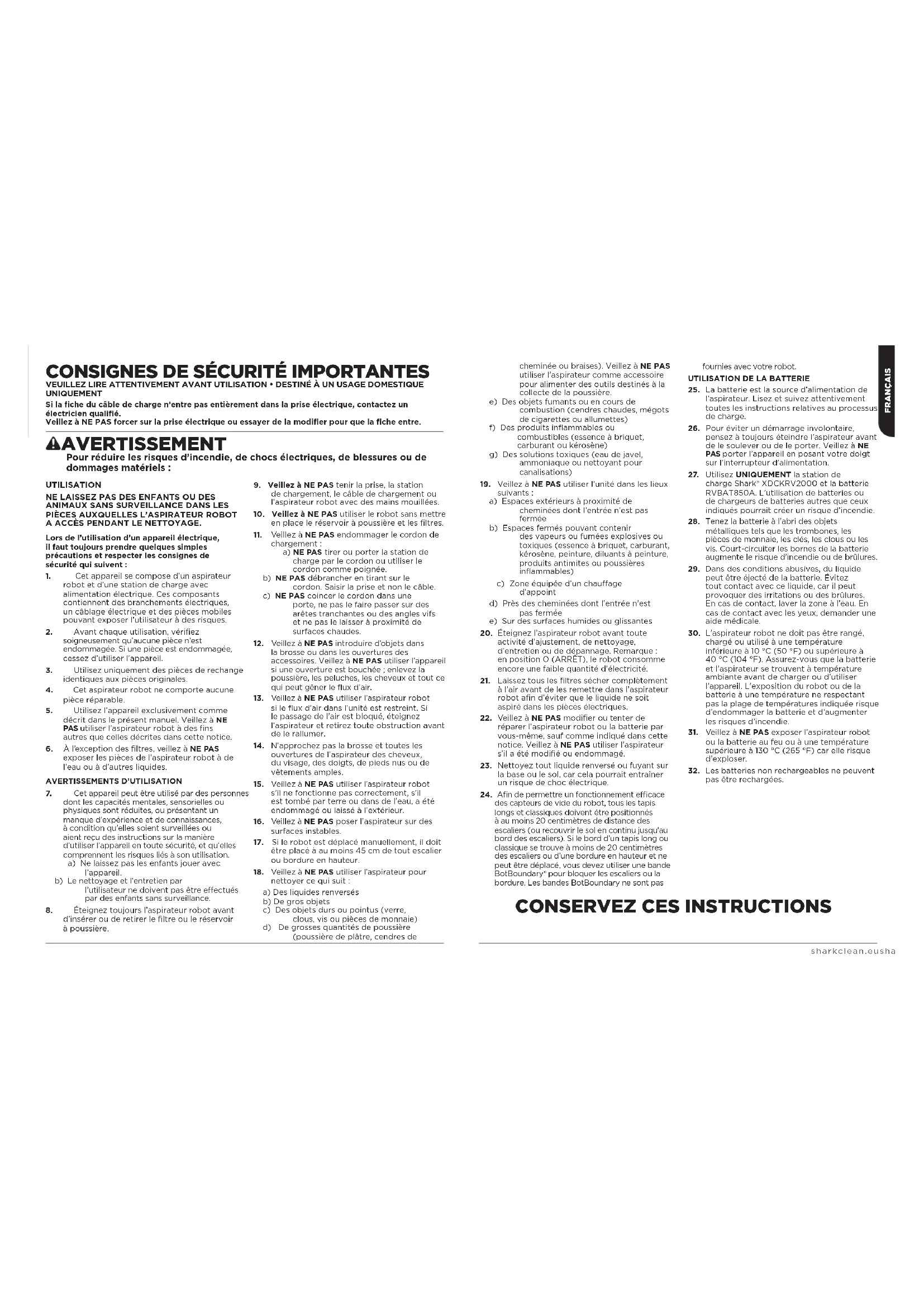 Ai Robot RV2001 - Aspirateur robot SHARK - Notice d'utilisation et mode d'emploi gratuit