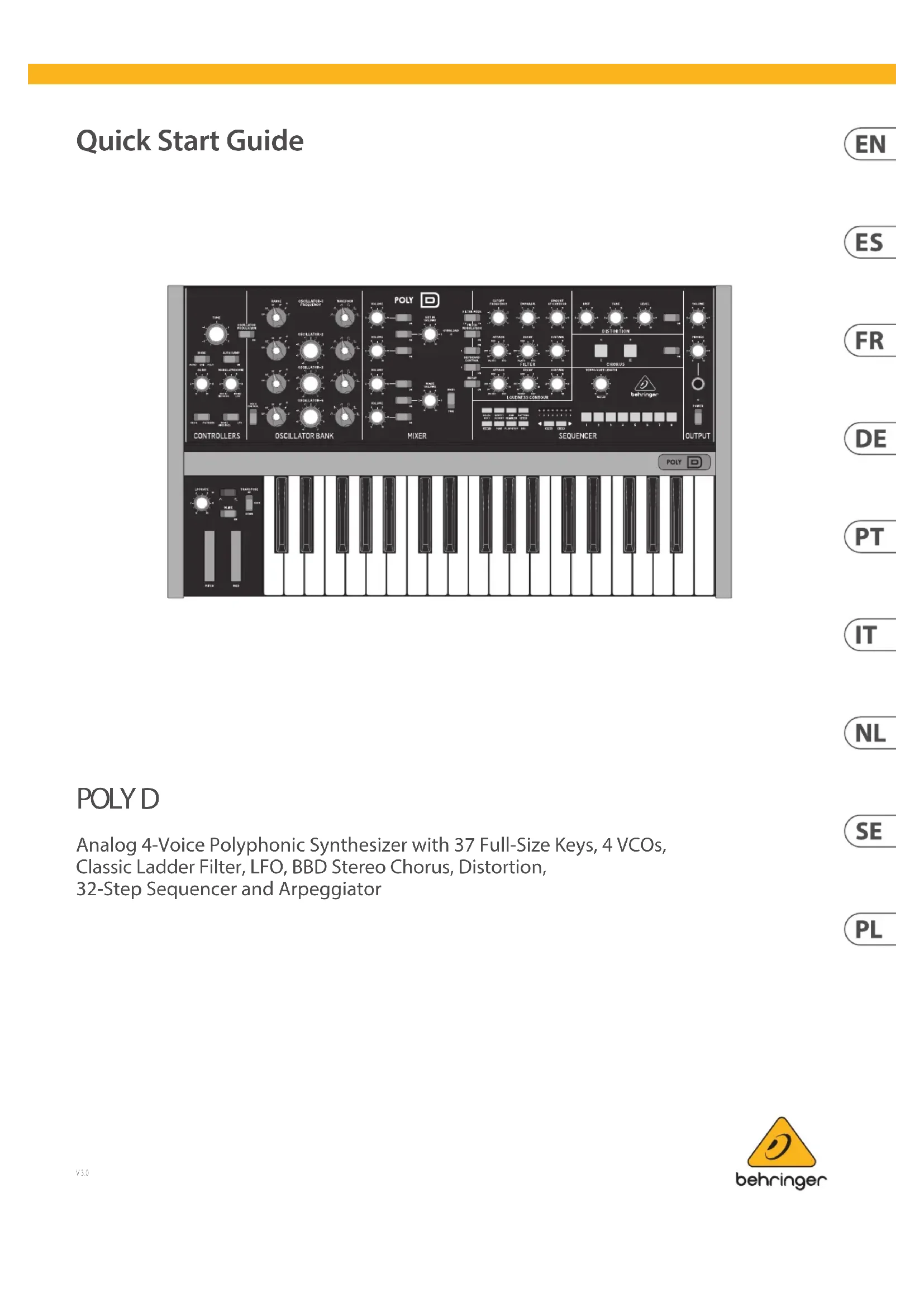 Poly D - Synthétiseur BEHRINGER - Notice d'utilisation et mode d'emploi gratuit