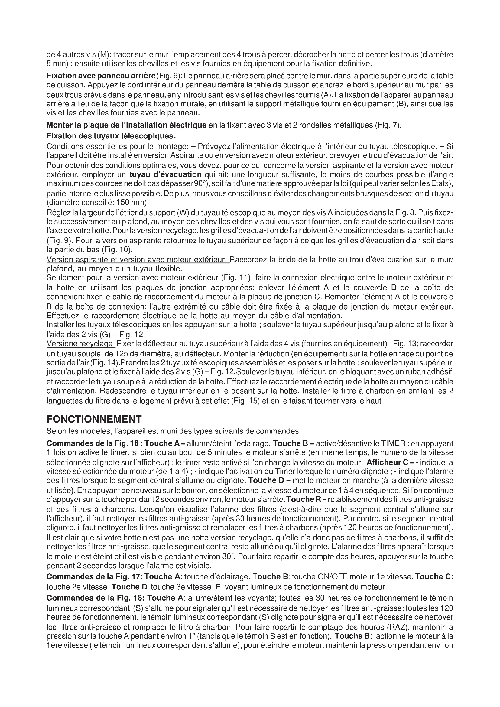 | Modes de fonctionnement | Extraction et recyclage, avec filtre à charbon en option. |