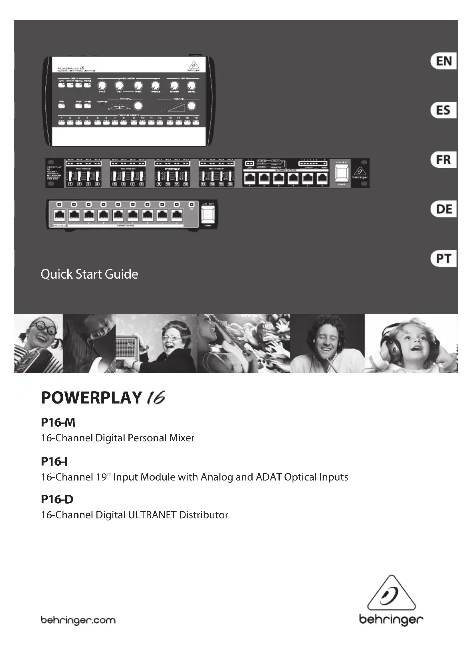 Dommages/pannes causés par l’acte de Dieu ou de la Nature (accident,incendie, inondation, etc.) ou toute autre condition au- delà du contrôle de MUSICGroup. (7) Toute réparation ou ouverture du boîtier réalisée par un personnel non agréé (ce qui comprend l’utilisateur) annule immédiatement la garantie. (8) Si une inspection du produit réalisée par MUSICGroup indique que la panne ou le défaut en question n’est pas couvert par la garantie, les coûts d’inspection seront à la charge du client. (9) Les produits qui ne sont pas pris en charge par les termes de cette garantie seront réparés à la charge de l’acheteur. MUSICGroup ou ses centres de réparation agréés informeront l’acheteur de telles circonstances. Sil’acheteur ne soumet pas un formulaire de réparation écrit dans les 6 semaines suivant la noti cation, MUSICGroup renverra le produit à vos frais avec une facture séparée pour les frais de port et d’emballage. Cescoûts seront également facturés séparément une fois que l’acheteur a envoyé sa demande écrite deréparation. (17) Les revendeurs MUSIC Group agréés ne vendent pas de produits neufs directement dans les enchères en ligne. Les achats réalisés dans les enchères en ligne sont laissés à l’entière responsabilité et aux risques de l’acheteur. Lespreuves d’achat issues de ventes aux enchères en ligne ne sont pas acceptées comme véri cation ou preuve d’achat et MUSICGroup ne réparera et ne remplacera pas les produits achetés aux enchères en ligne. § 5 Transfert de garantie Cette garantie limitée est attribuée uniquement à l’acheteur initial (clientd’un revendeur agréé). Elle n’est pas transférable aux personnes suivantes qui achètent le produit. Personne n’est autorisé (revendeur,etc.) à donner une promesse de garantie de la part de MUSICGroup. § 6 Réparation de dommages Sujet uniquement aux lois locales applicables, MUSICGroup ne peut pas être tenu responsable auprès de l’acheteur, par cette garantie, d’aucun dommage ou d’aucune perte indirecte liée à l’utilisation du produit. Laresponsabilité de MUSICGroup ne peut en aucun cas, même dans le cadre de la garantie, dépasser la valeur du produit indiquée sur la factured’achat. § 7 Limitation de responsabilité Cette garantie limitée telle que présentée dans cette page représente la seule garantie contractuelle entre vous et MUSICGroup. Elleannule et remplace tous les autres moyens de communication écrits ou oraux liés à ce produit. MUSICGroup ne fournit aucune garantie pour ce produit. 8 9Quick Start GuidePOWERPLAY 16 P16-M /P16 -I/P16-DWichtige Sicherhteitshinweise