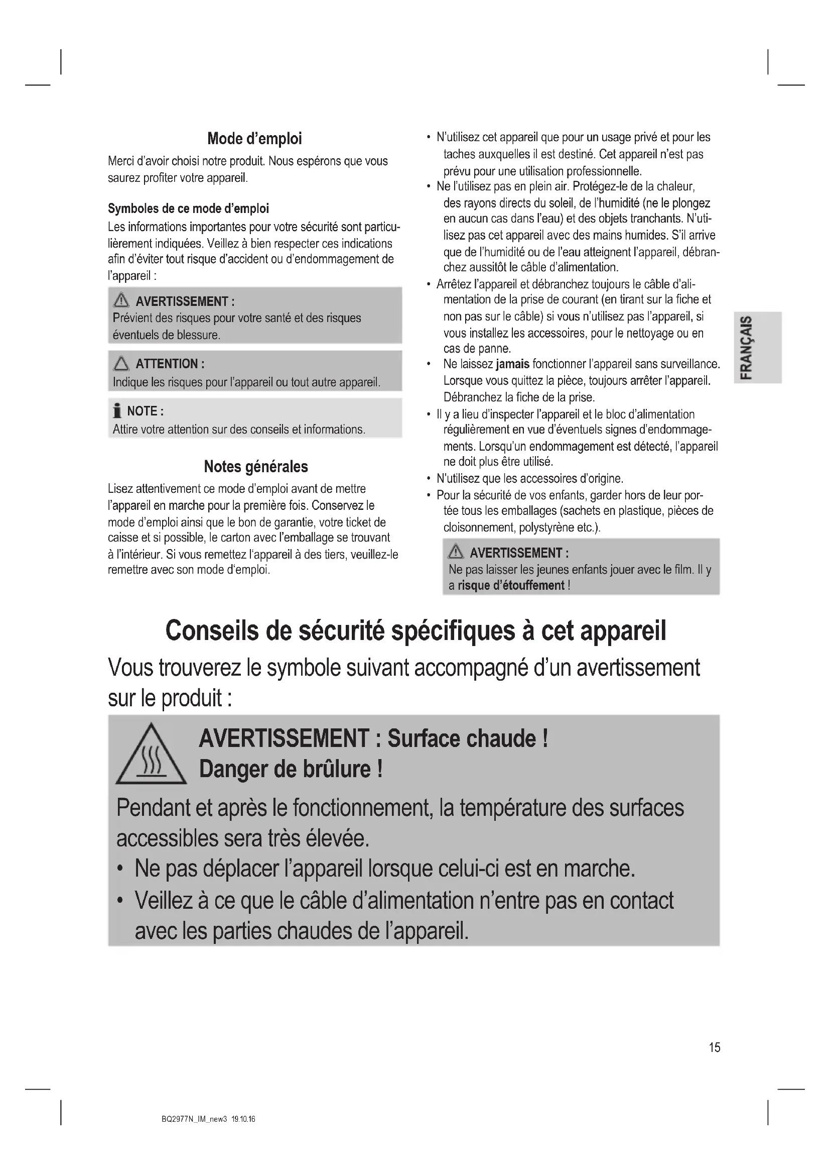 - Débranchez toujours l’appareil et laissez-le refroidir avant de le nettoyer.19 BQ2977N_IM_new3 19.10.16