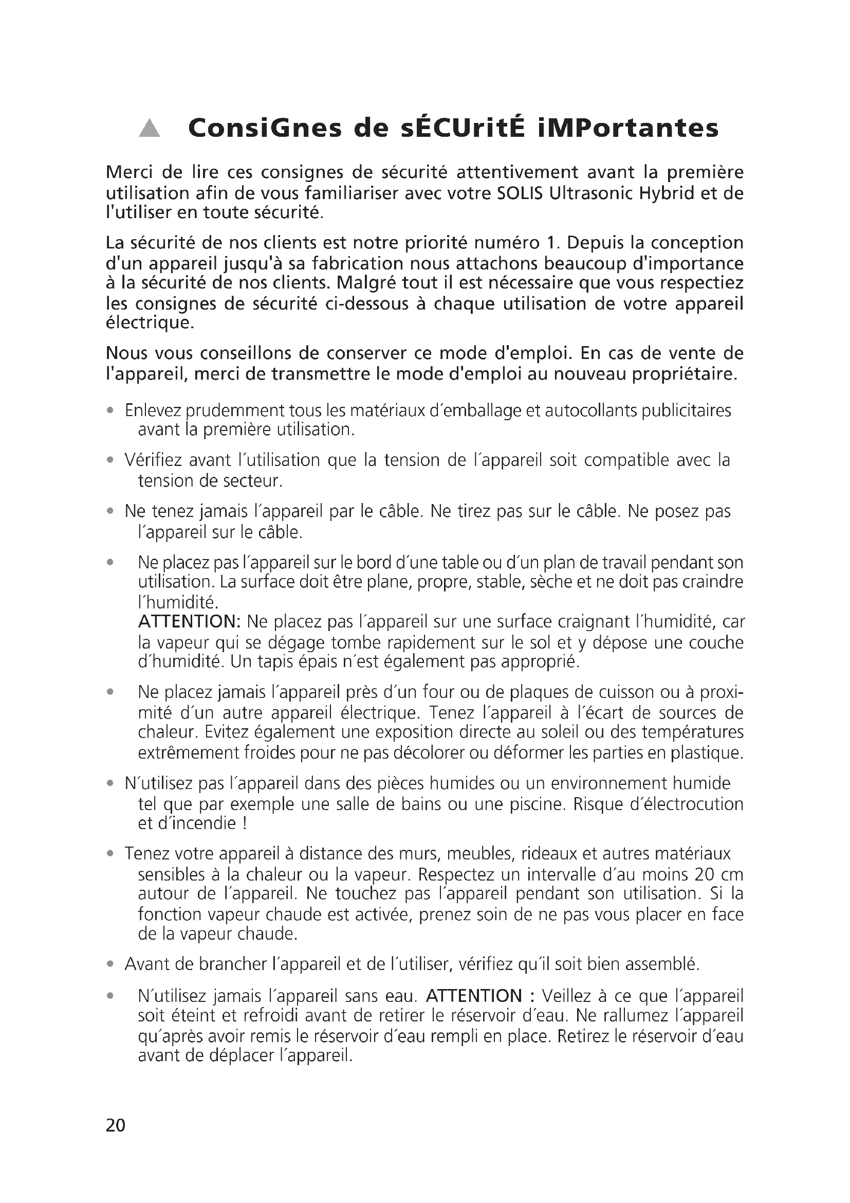 - Conservez ce mode d´emploi.23 les Fonctions et aVantages de Votre humidiFicateur solis ultrasonic hybrid
