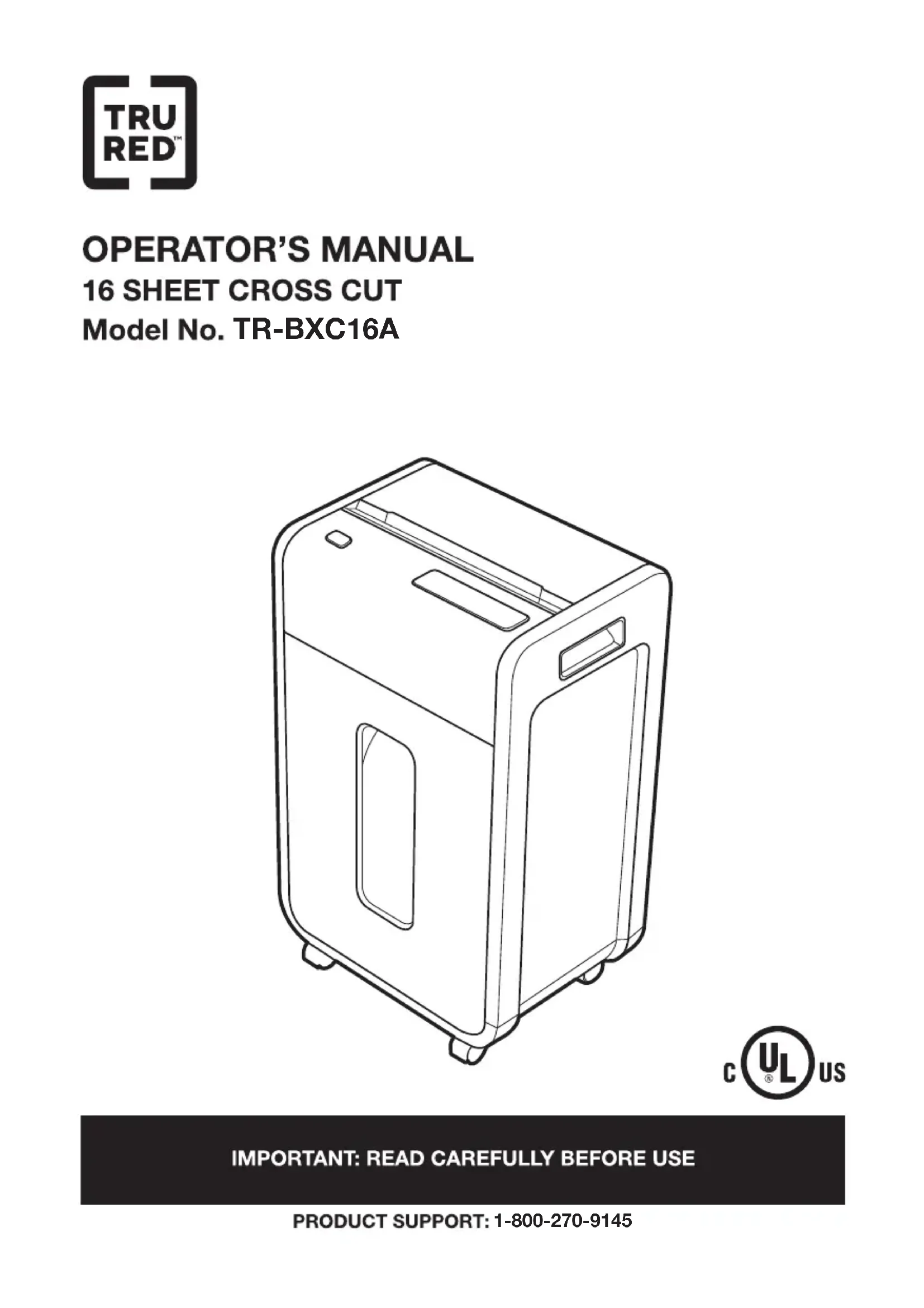 TRBXC16A - Destructeur de document TRU RED - Notice d'utilisation et mode d'emploi gratuit