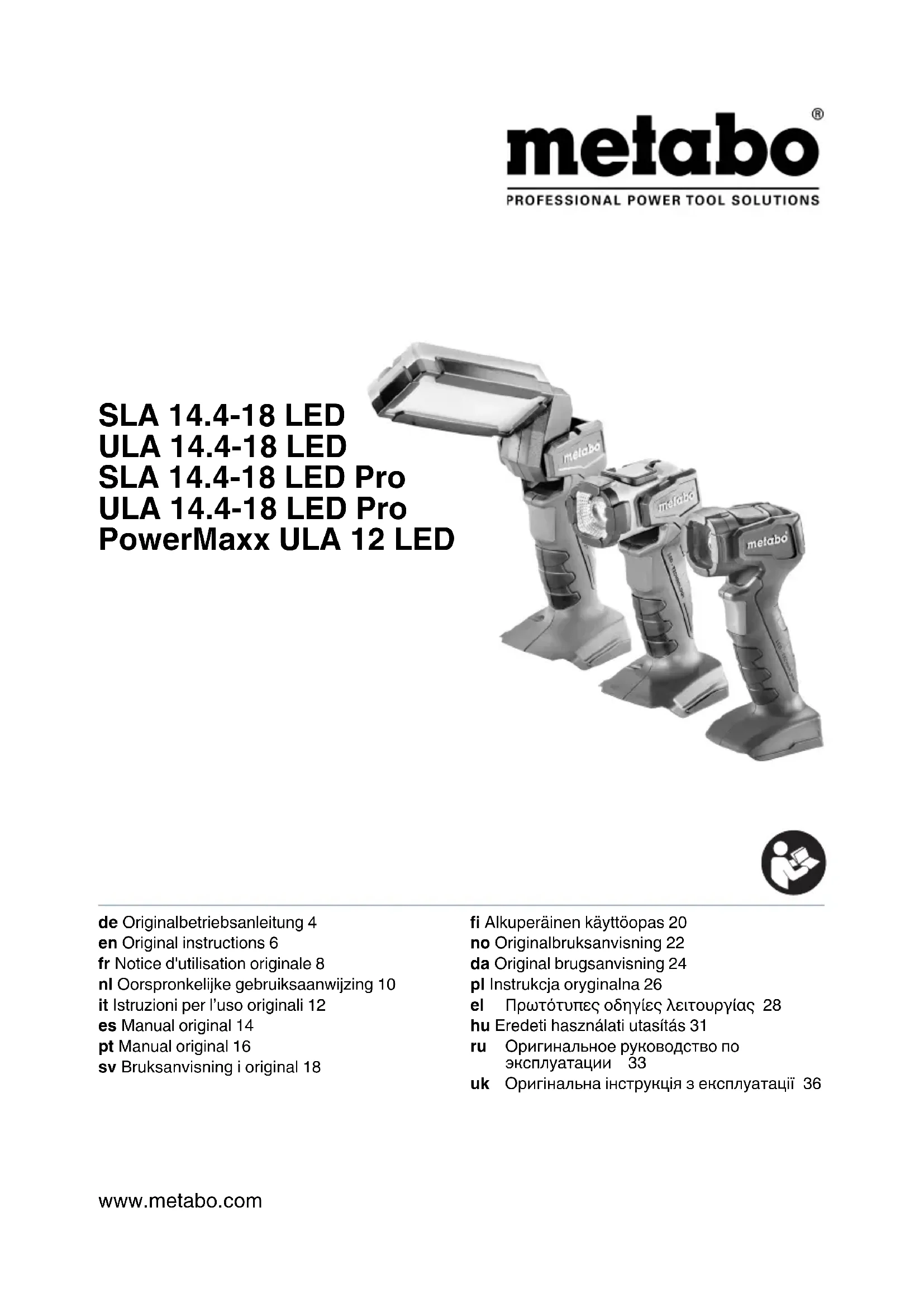 PowerMaxx ULA 12 LED - Lampe METABO - Notice d'utilisation et mode d'emploi gratuit