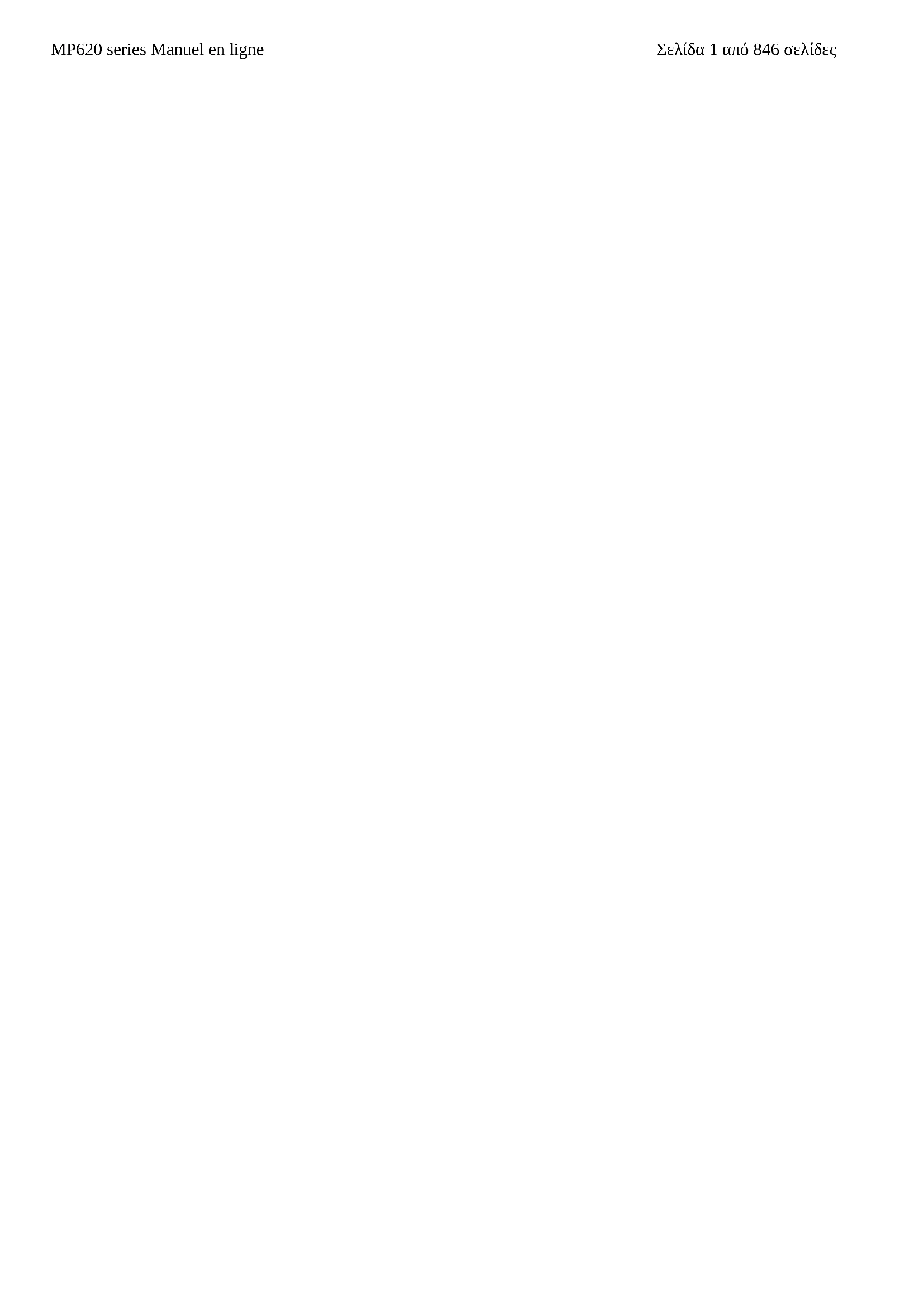 Utilisation de ce manuelImpression du manuelMC-3131-V1.00 Guide d’utilisation de base Fournit un récapitulatif de ceproduit. Guide d'utilisation avancée Décrit en détail la fonctionde ce produit. Dépannage Σελίδα 1 από 846 σελίδεςMP620 series Manuel en ligneUtilisation de ce manuelImpression du manuelMP-2464-V1.00Guide d'utilisation avancée Contenu Présentation de la machine Principaux composantsComment parcourir les menus de l'écran LCDImpression à partir d'une carte mémoireImpression de photos enregistrées sur la cartemémoireUtilisation de différentes fonctionsInsertion de la carte mémoireCopieCopie de documentsUtilisation de diverses fonctions de copieImpression de photos à partir de tirages papier Retirage de photos imprimées Utilisation de différentes fonctionsNumérisation Enregistrement de données numérisées Impression depuis votre ordinateur Impression de photos (Easy-PhotoPrint EX) Impression de documents (Windows) Impression de documents (Macintosh) Autres utilisations Impression sur du papier bloc-notes oumillimétréImpression de photos directement à partir d'unappareil photo numérique ou d'un téléphonemobileParamètres de la machine Solution Menu et My Printer Chargement du papier / des originaux Chargement du papier Chargement d'originaux à copier ou à numériserProcédures d'entretien Remplacement d'un réservoir d'encre L'impression devient pâle ou les couleurs nes'impriment plus correctement Nettoyage du rouleau d'entraînement du papier Nettoyage de la zone de contact de la cassette Annexe Précautions de sécuritéConditions légales d'utilisation de ce produit etdes imagesConseils d'utilisation de votre machine Σελίδα 2 από 846 σελίδεςMP620 series Guide d'utilisation de baseGuide d'utilisation avancée DépannageContenu > Présentation de la machine Présentation de la machine Cette section présente les composants de la machine ainsi que les opérations de base à connaître avant toute utilisation. Principaux composants Face avant Face arrière Vue de l’intérieur Panneau de contrôle Comment parcourir les menus de l'écran LCD Sélection de menus dans l'écran ACCUEIL Sélection des paramètres de configuration Autres opérations Haut de la page Σελίδα 3 από 846 σελίδεςPrésentation de la machineGuide d'utilisation avancée DépannageContenu > Présentation de la machine > Principaux composants Principaux composants Face avant (1) Capot de documents S’ouvre pour vous permettre de placer un original sur la vitre d'exposition. (2) Panneau de contrôle Permet de modifier les paramètres de la machine ou d'utiliser la machine. Reportez-vous à la section Panneau de contrôle