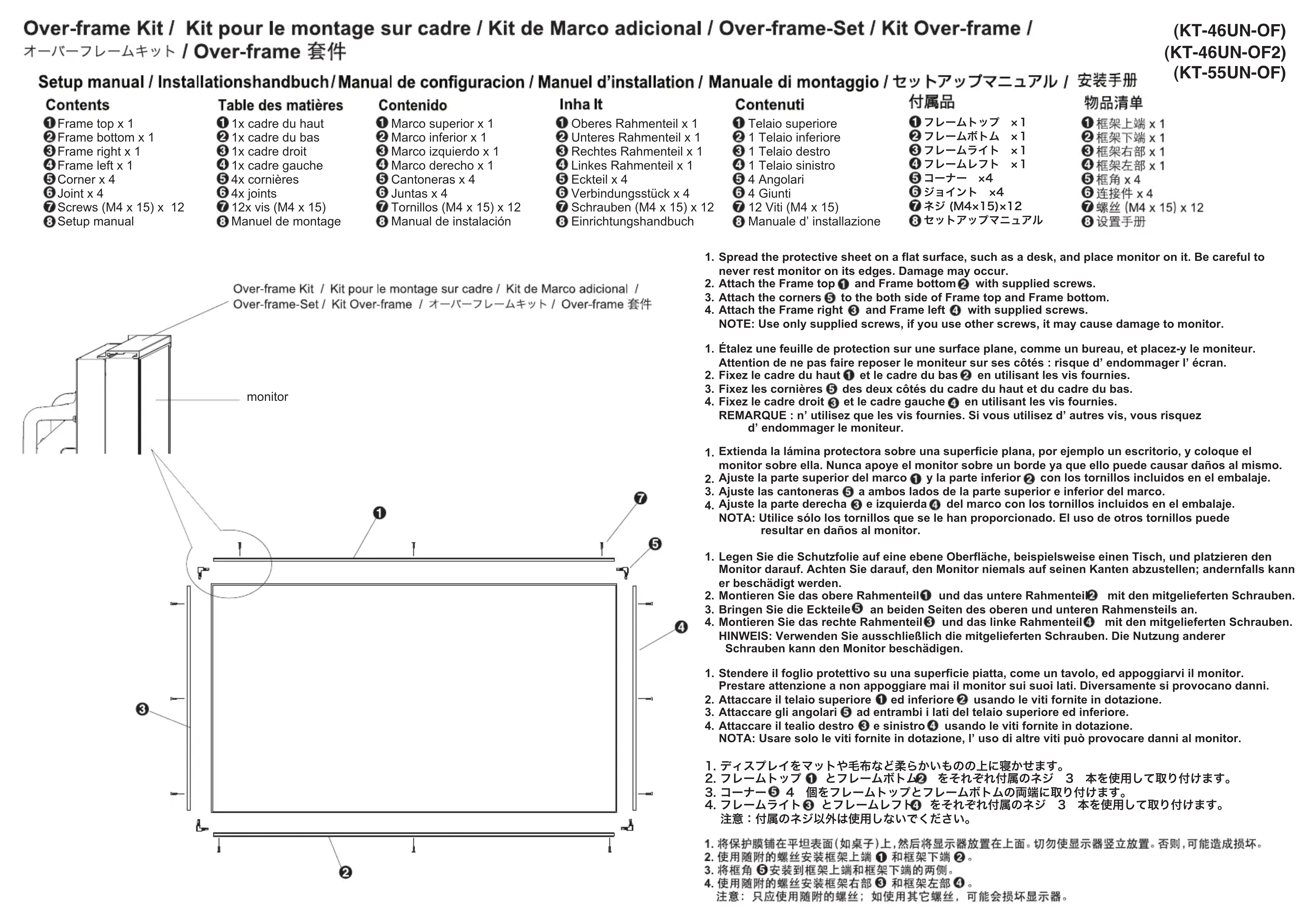 1. Fixez le cadre du haut et le cadre du bas en utilisant les vis fournies.