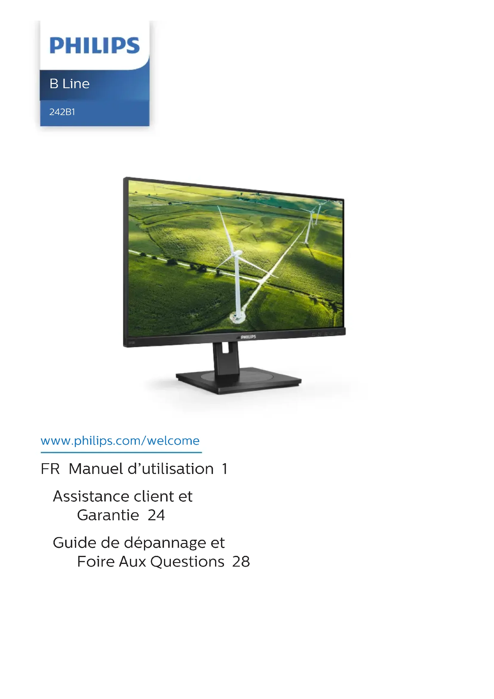 www.philips.com/welcome B Line 242B1 FR Manuel d’utilisation 1 Assistance client et Garantie 24 Guide de dépannage et Foire Aux Questions 28Table des matières