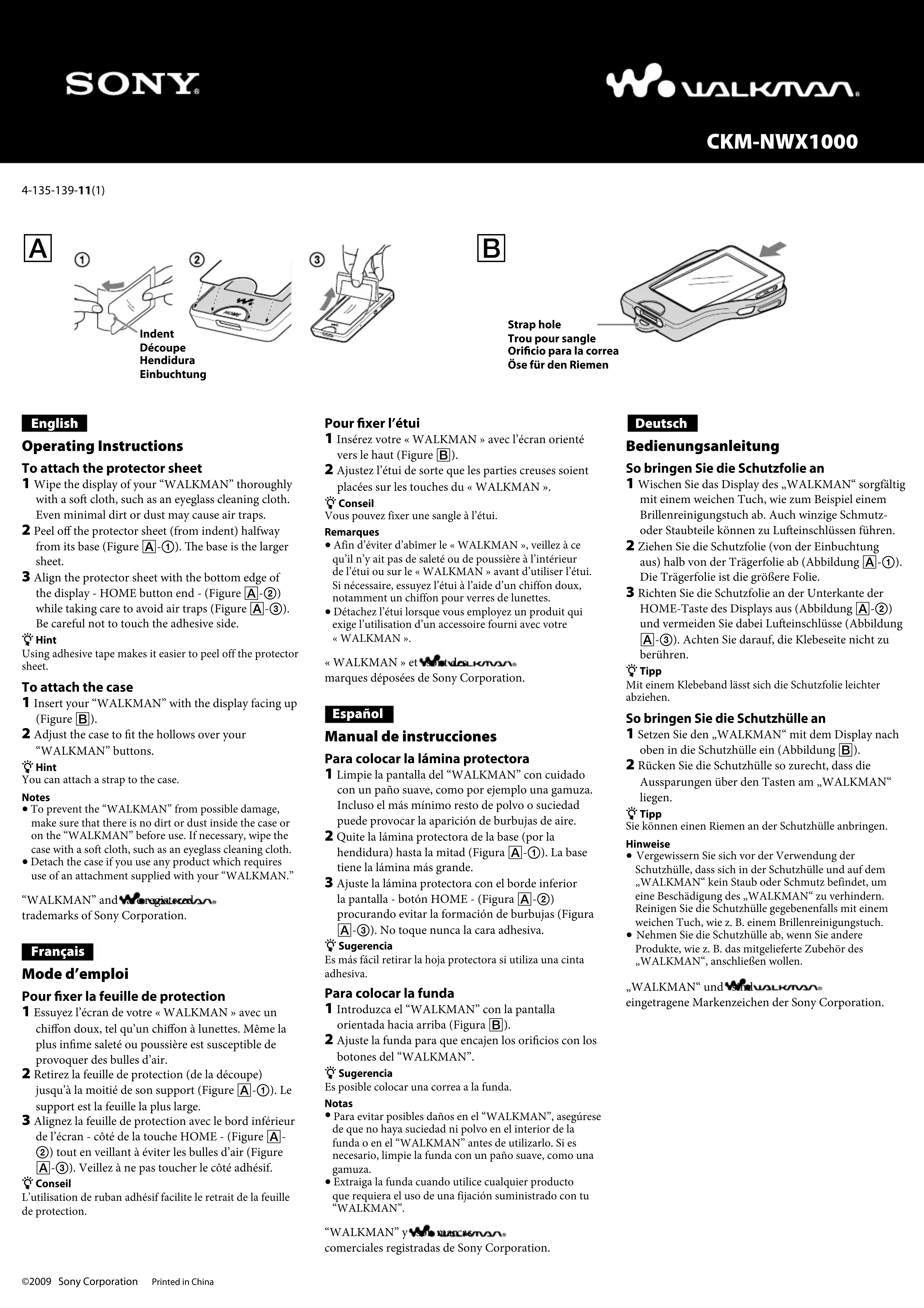 Retrouvez gratuitement la notice de l'appareil CKMNWX1000 SONY au format PDF.
